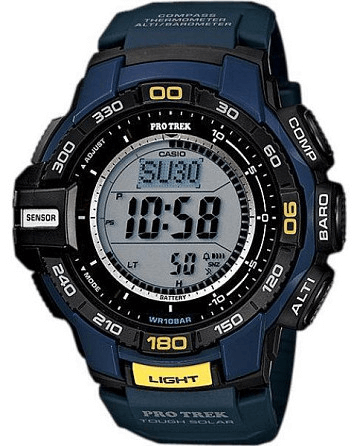 Pro Trek PRG-270-1 — ещё одни отличные бюджетные часы ABC от Casio. Они водонепроницаемы до 100 м и точно предсказывают время восхода и заката.
