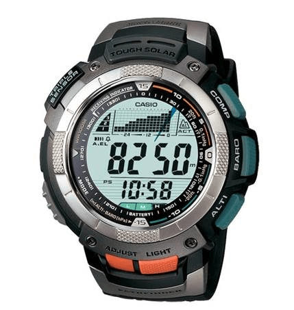 Casio Pathfinder — это часы с длительным сроком службы. Они могут работать до 6 месяцев без солнечного света. На улице солнечная панель вокруг дисплея будет заряжать часы практически бесконечно. Часы имеют три основных датчика ABC с временем восхода/заката солнца, что удобно для установки будильника.