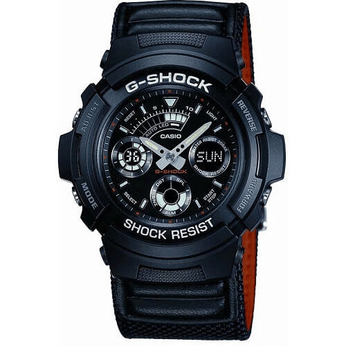 Эта модель G-Shock — одна из самых популярных моделей Casio. Она оснащена очень интересным дисплеем с множеством функций. В неё входят секундомер, функция отображения времени нескольких часовых поясов, таймер обратного отсчёта и будильник.