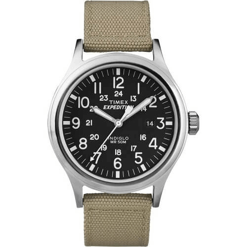 Имеют прочный металлический корпус и долговечный тканевый ремешок. Это качественно выполненная версия классических полевых часов. Часы показывают 12- или 24-часовой формат времени.