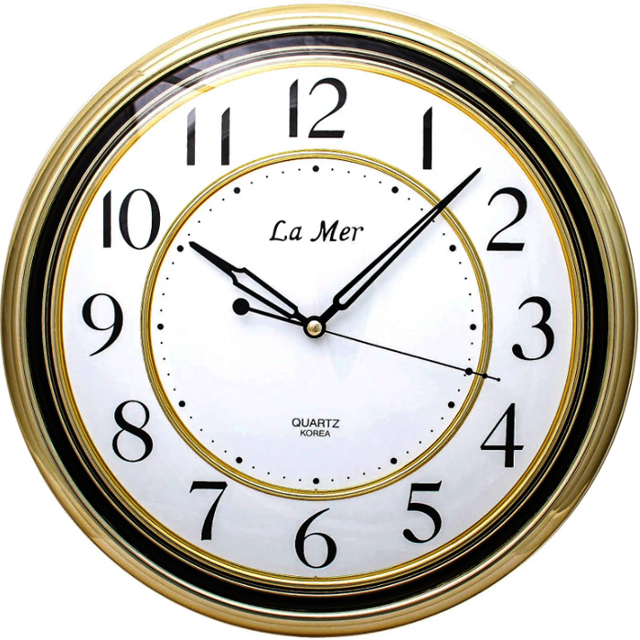 Кварцевые настенные часы La Mer GD078001. Данная модель работает от батарейки типа R6(AA) x 1 шт. (входит в комплект). Корпус выполнен из пластика. Ход секундной стрелки — плавный.