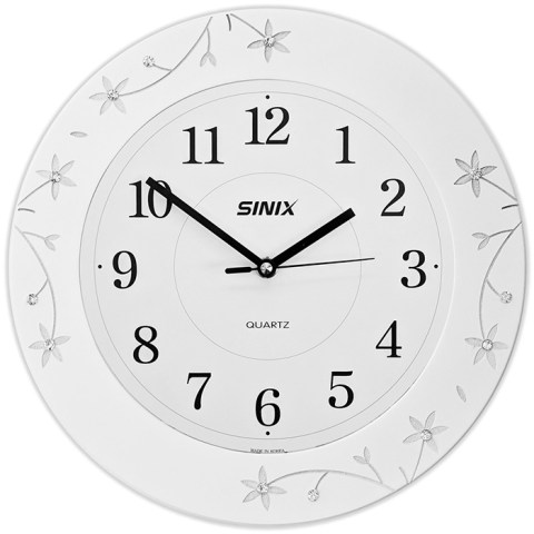 Кварцевые настенные часы Sinix 5097W. Деревянный корпус часов (МДФ) украшен стразами. Ход стрелок — плавный (бесшумный).