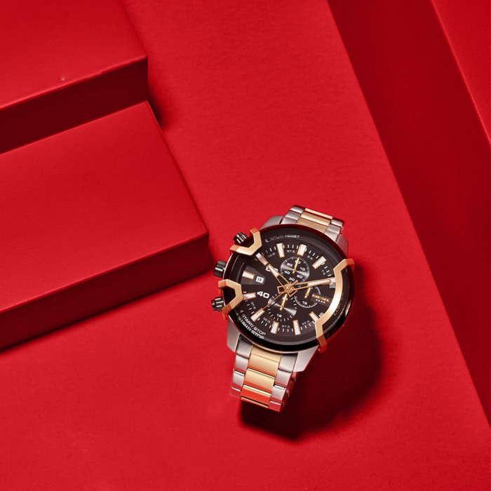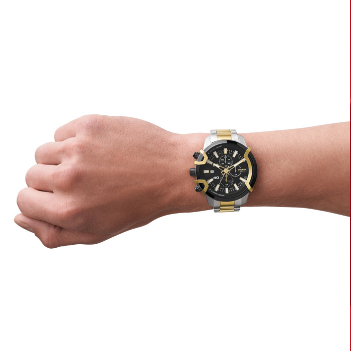 Мужские кварцевые наручные часы с хронографом (секундомером) Diesel DZ4577 коллекции Griffed. На данной модели отображается дата и время суток в 24-х часовом формате. Секундомер может отсчитывать до 60 минут с точностью 1/10 секунды. Cтальной браслет. На корпус и браслет частично нанесено стойкое PVD покрытие. Водонепроницаемость WR50 (5 атм).