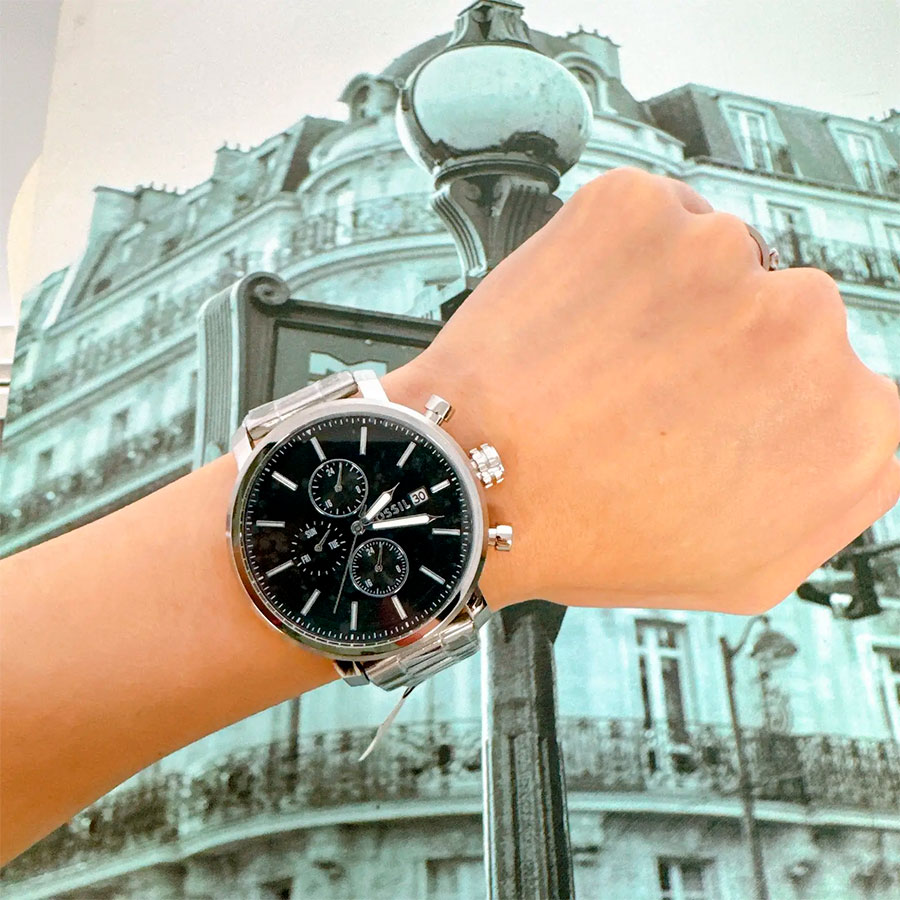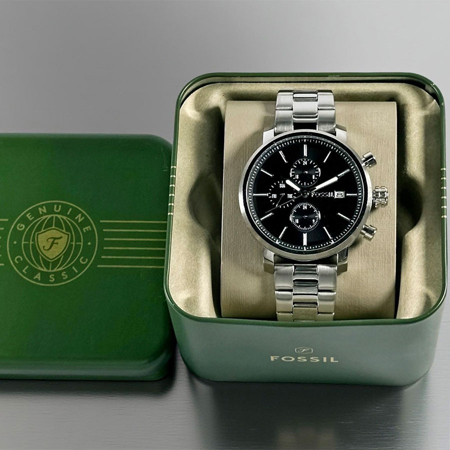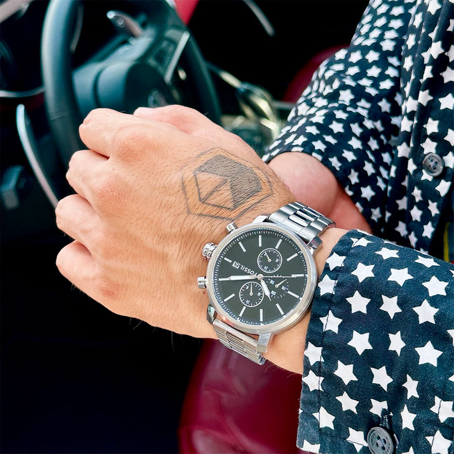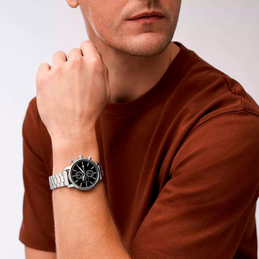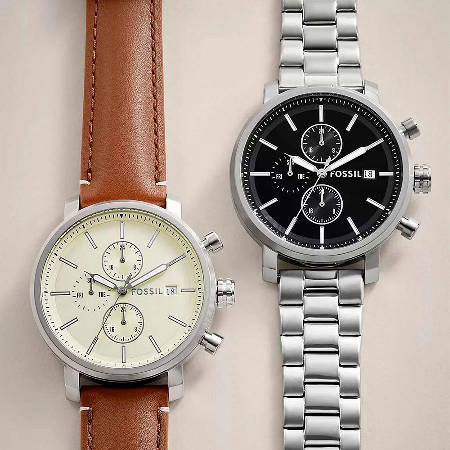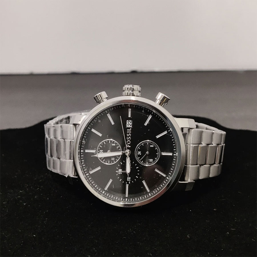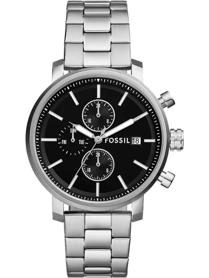 Мужские кварцевые наручные часы с хронографом (секундомером) Fossil BQ2851 коллекции Rhett. На данной модели отображается дата и время суток (24-х часовая шкала). Секундомер может отсчитывать до 30 минут. Стальной браслет. Водонепроницаемость WR50 (5 атм).