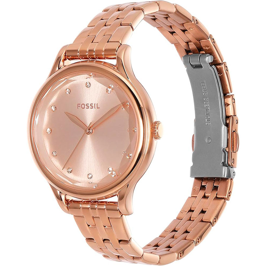 Женские кварцевые наручные часы Fossil BQ3862 коллекции Laney. Циферблат украшен кристаллами. Стальной браслет. На корпус и браслет нанесено стойкое PVD покрытие. Водонепроницаемость WR50 (5 атм).