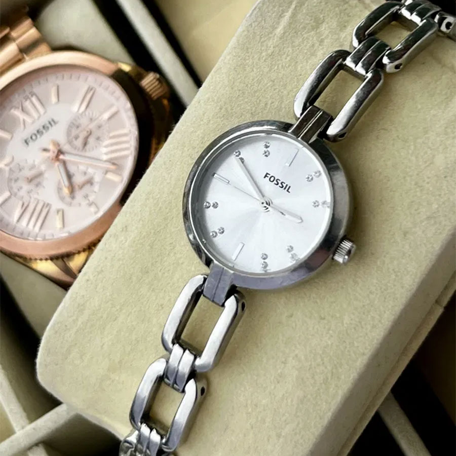 Женские кварцевые наручные часы Fossil BQ3945 коллекции Kerrigan. Циферблат украшен кристаллами. Стальной браслет. Водонепроницаемость WR50 (5 атм).