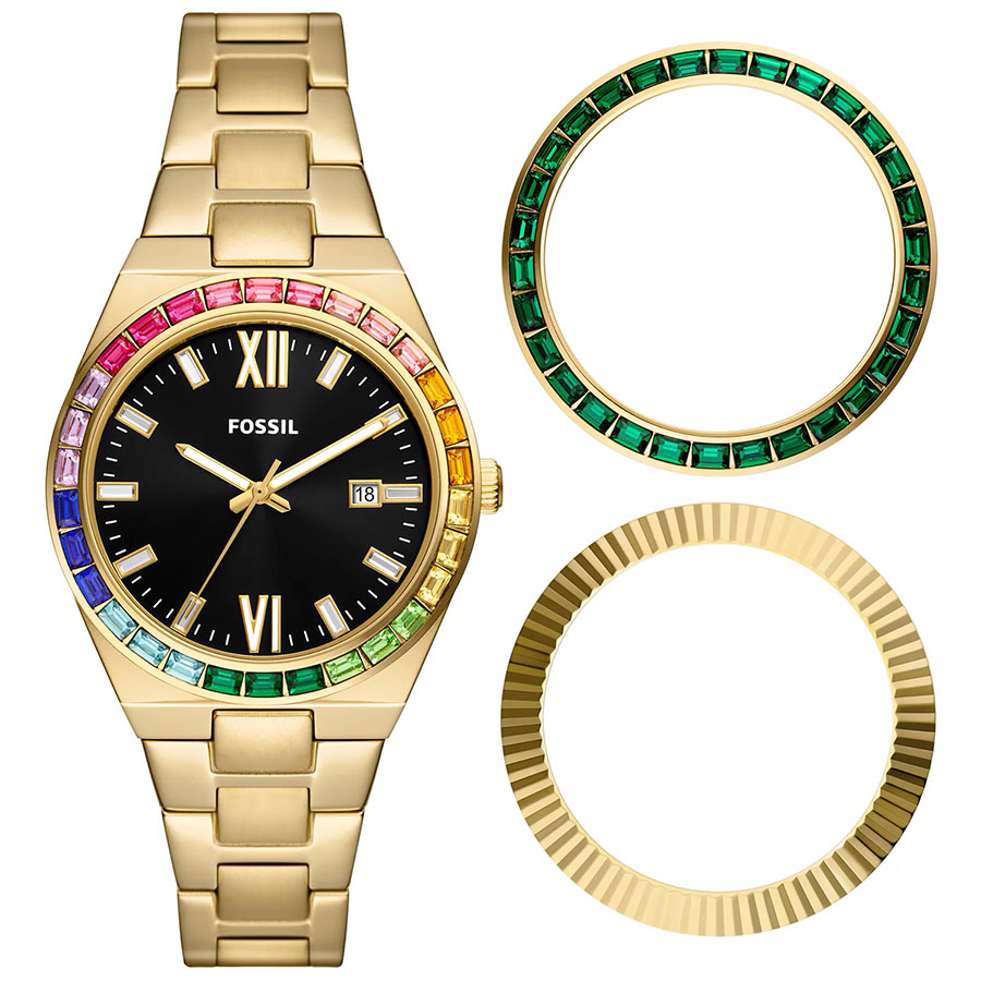 Женские кварцевые наручные часы Fossil ES5311SET коллекции Scarlette. Циферблат выполнен по технологии Sunray (солнечные лучи). Стальной браслет. На данной модели отображается текущая дата. На корпус и браслет нанесено стойкое PVD покрытие. В комплект входят два сменных безеля. Водонепроницаемость WR50 (5 атм).
