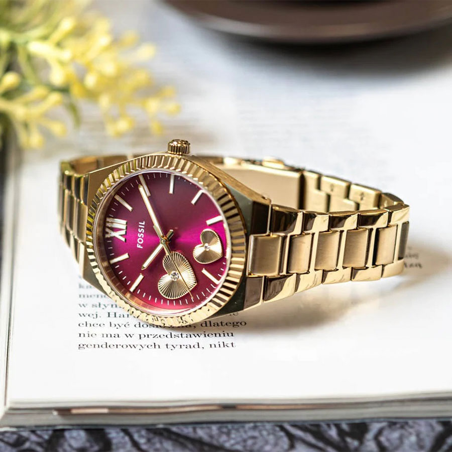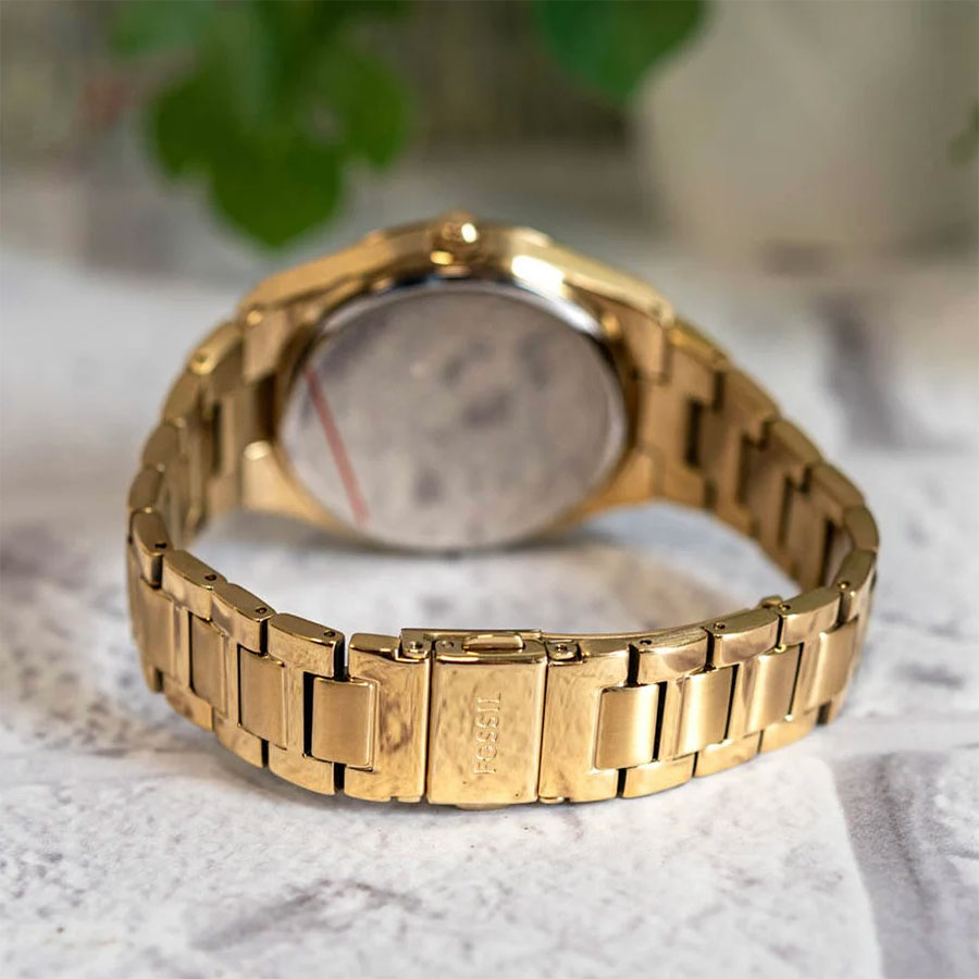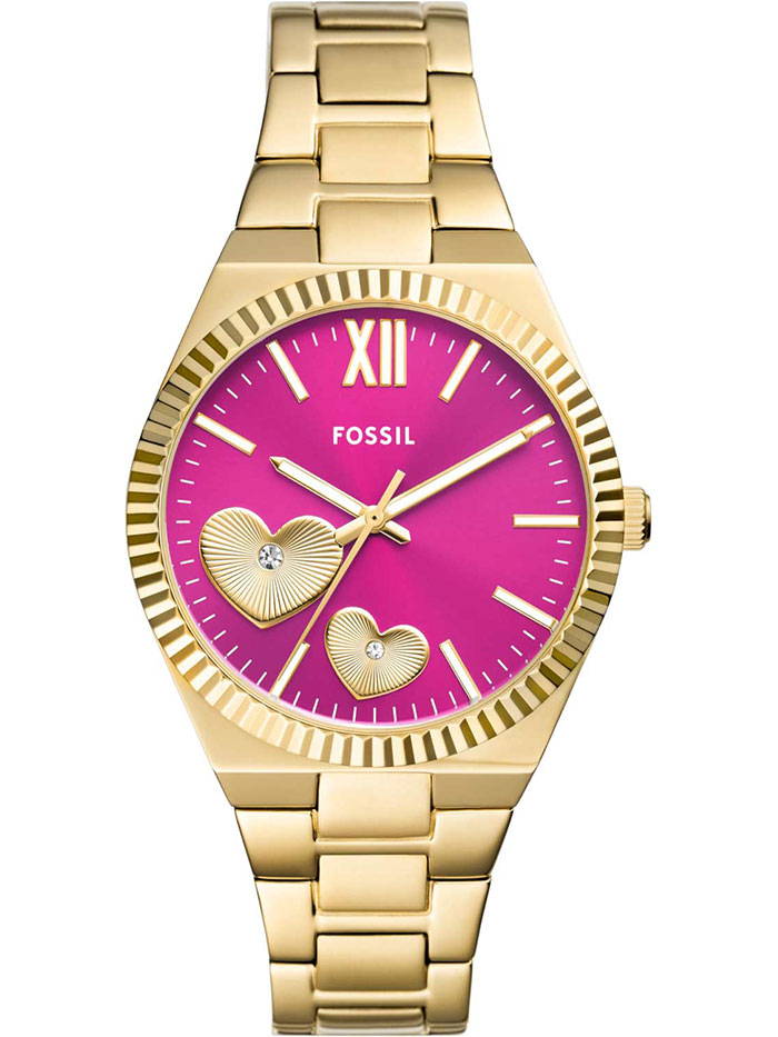 Женские кварцевые наручные часы Fossil ES5325 коллекции Scarlette. Циферблат выполнен по технологии Sunray (солнечные лучи). Стальной браслет. На корпус и браслет нанесено стойкое PVD покрытие. Циферблат украшен кристаллами. Водонепроницаемость WR50 (5 атм).