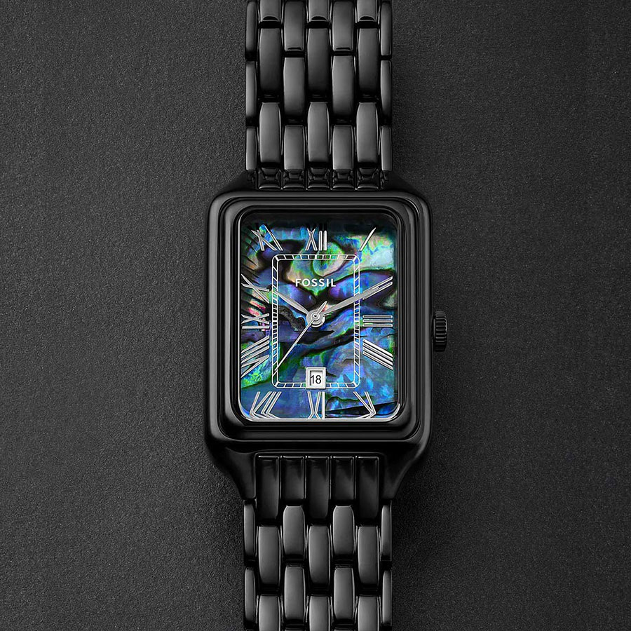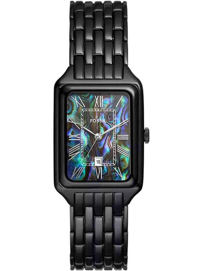Женские кварцевые наручные часы Fossil ES5340 коллекции Carlie. На циферблате отображается текущая дата. Циферблат из ракушки Абалона. Стальной браслет. На корпус и браслет нанесено стойкое PVD покрытие. Водонепроницаемость WR50 (5 атм).