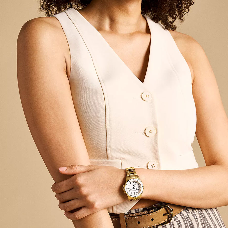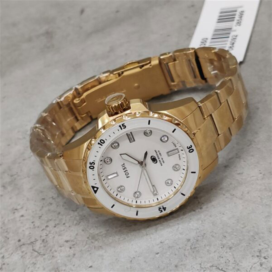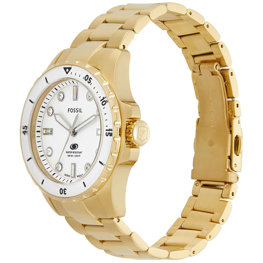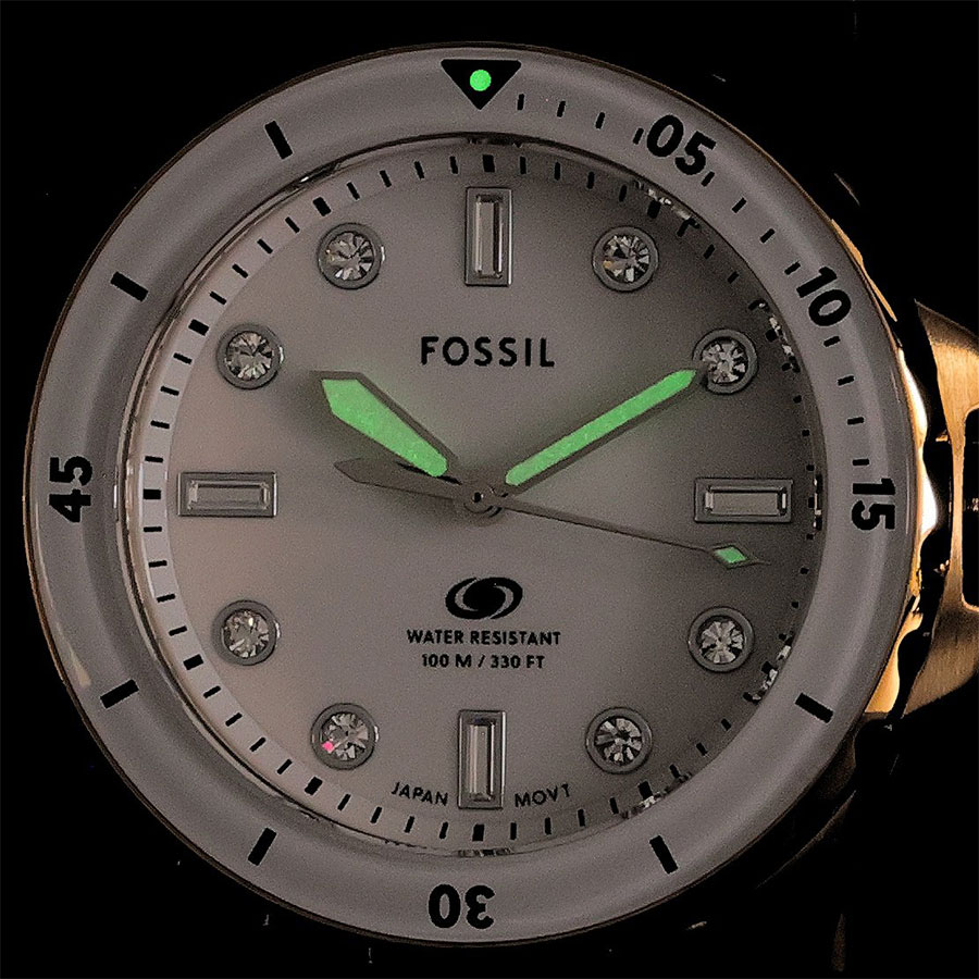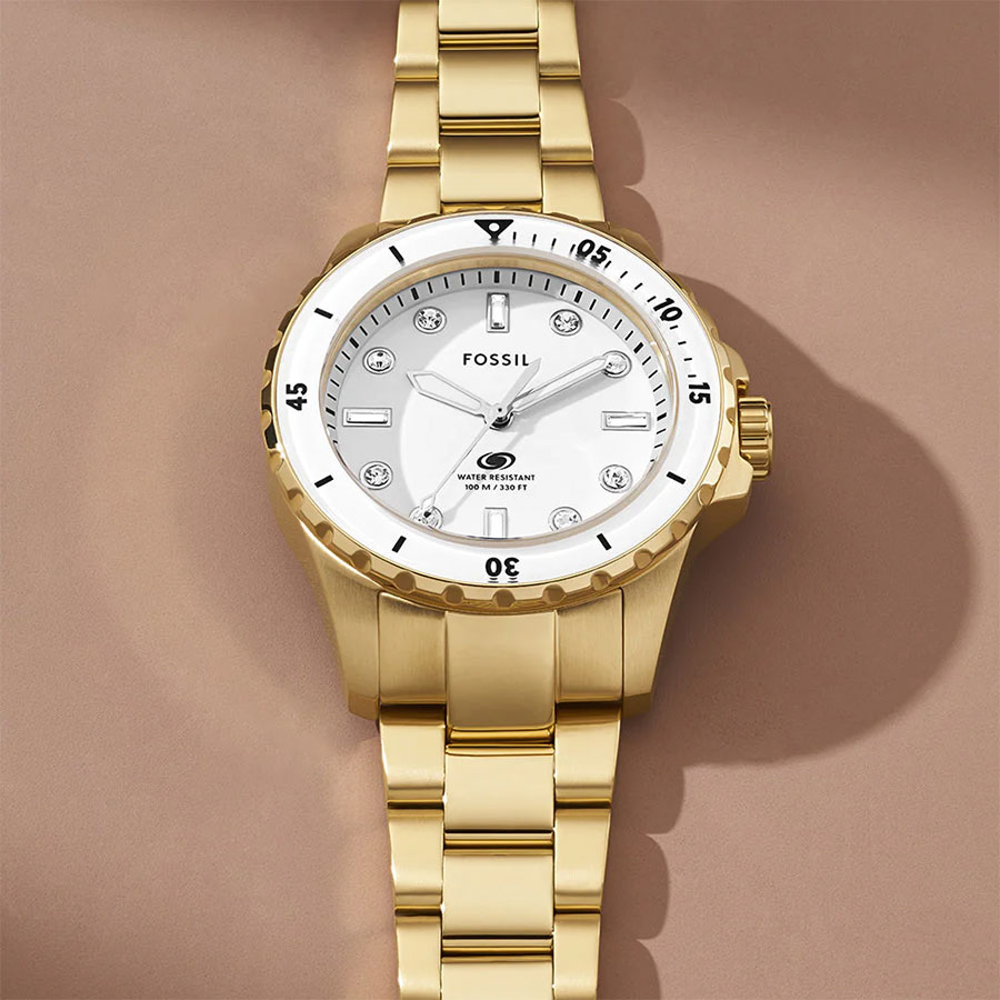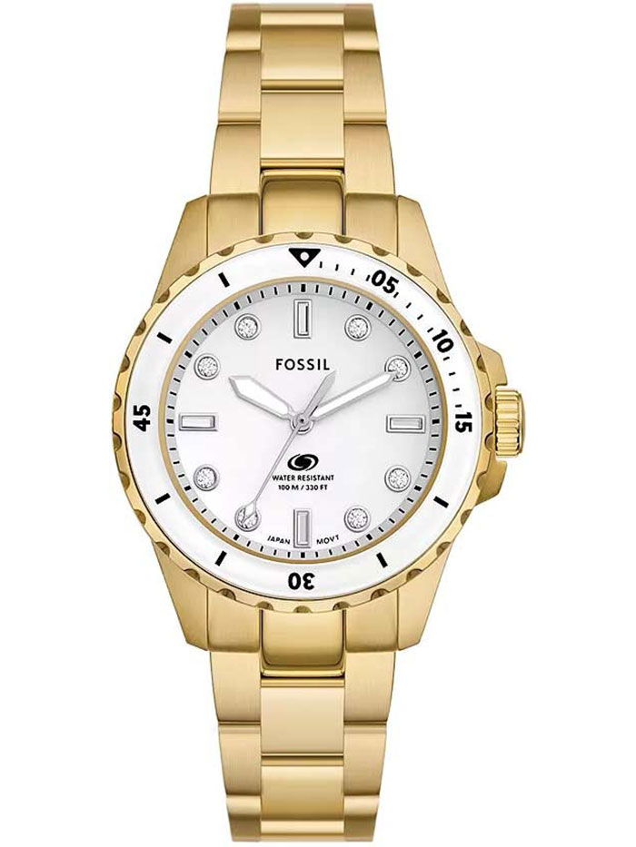 Женские кварцевые наручные часы Fossil ES5350 коллекции Fossil Blue Dive. Циферблат украшен кристаллами. Стальной браслет. На корпус и браслет нанесено стойкое PVD покрытие. Завинчивающаяся задняя крышка. Водонепроницаемость WR100 (10 атм).