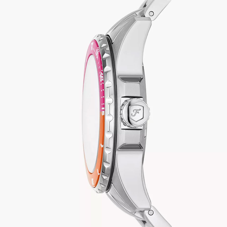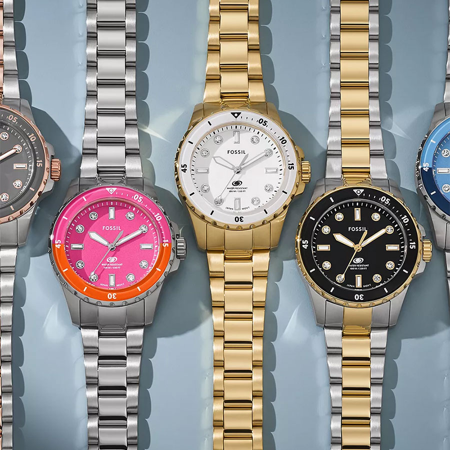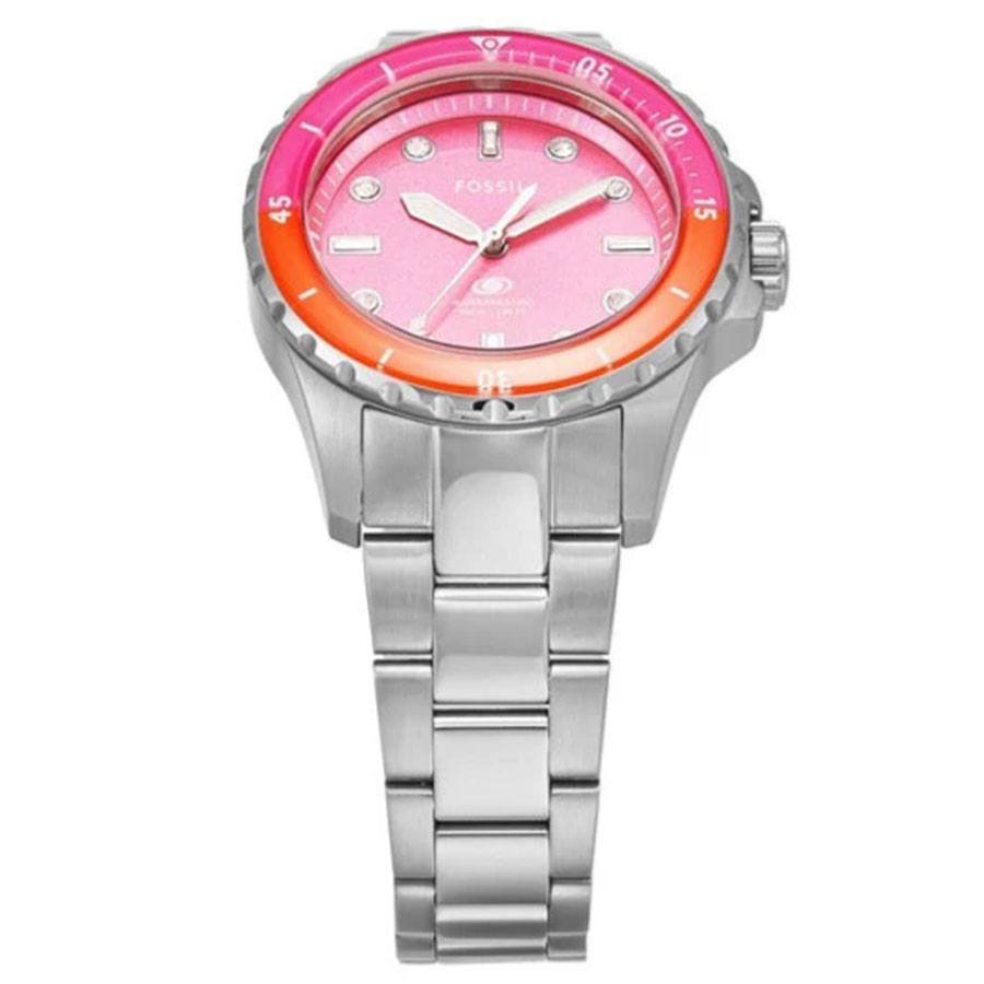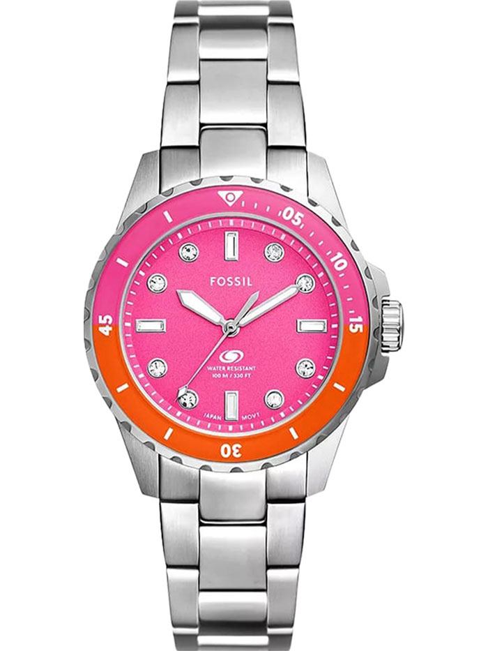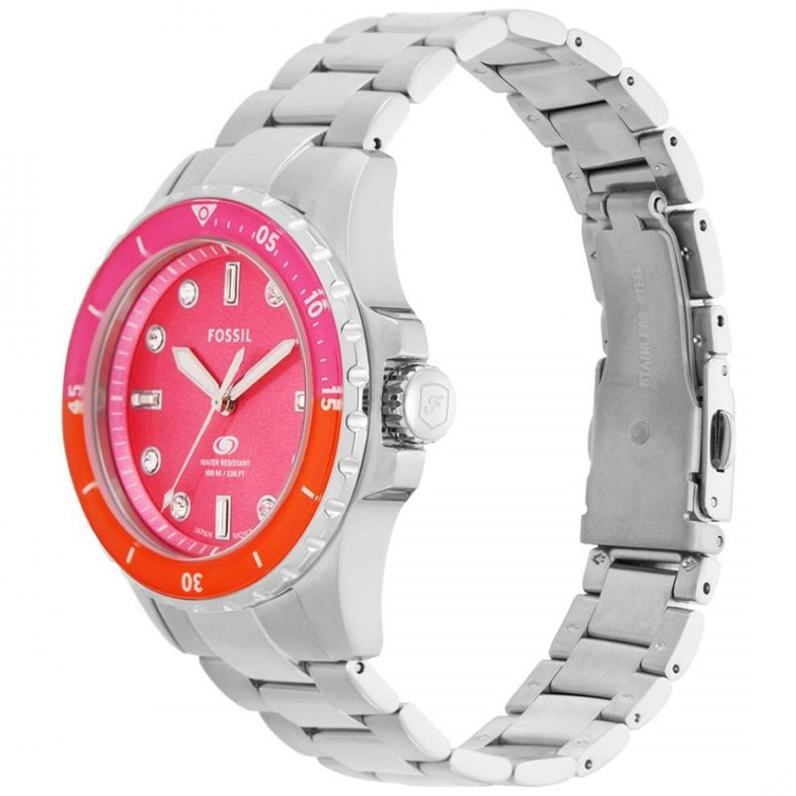 Женские кварцевые наручные часы Fossil ES5351 коллекции Fossil Blue Dive. Циферблат украшен кристаллами. Стальной браслет. Завинчивающаяся задняя крышка. Водонепроницаемость WR100 (10 атм).