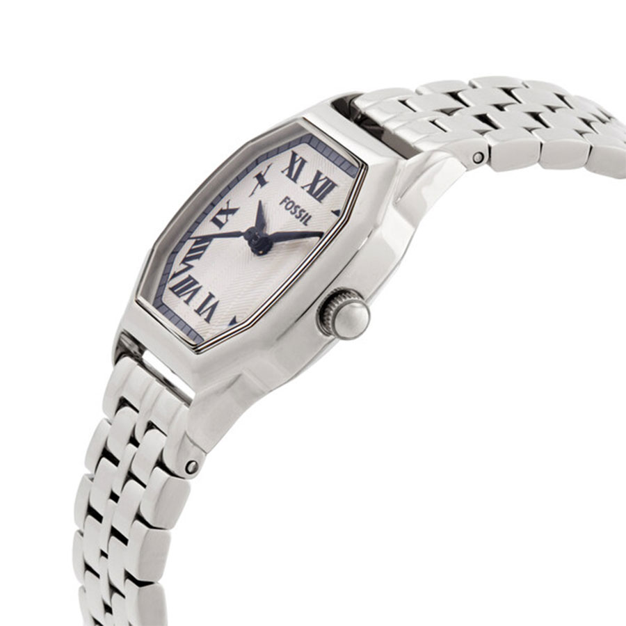 Женские кварцевые наручные часы Fossil ES5363 коллекции Carlie. Циферблат украшен изящным рисунком «елочка», создающим интересный визуальный эффект. Стальной браслет. Водонепроницаемость WR (3 атм).