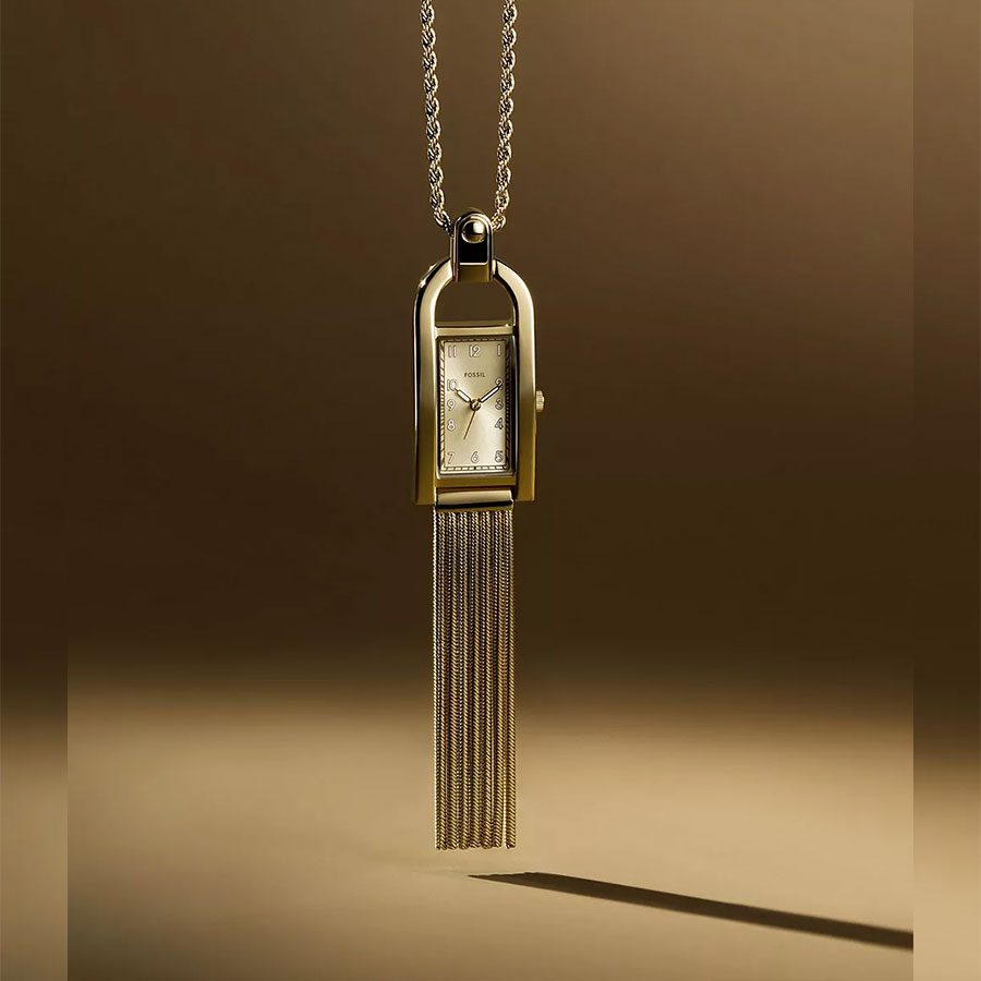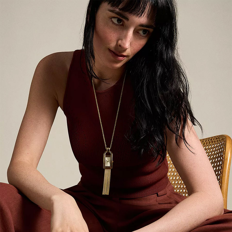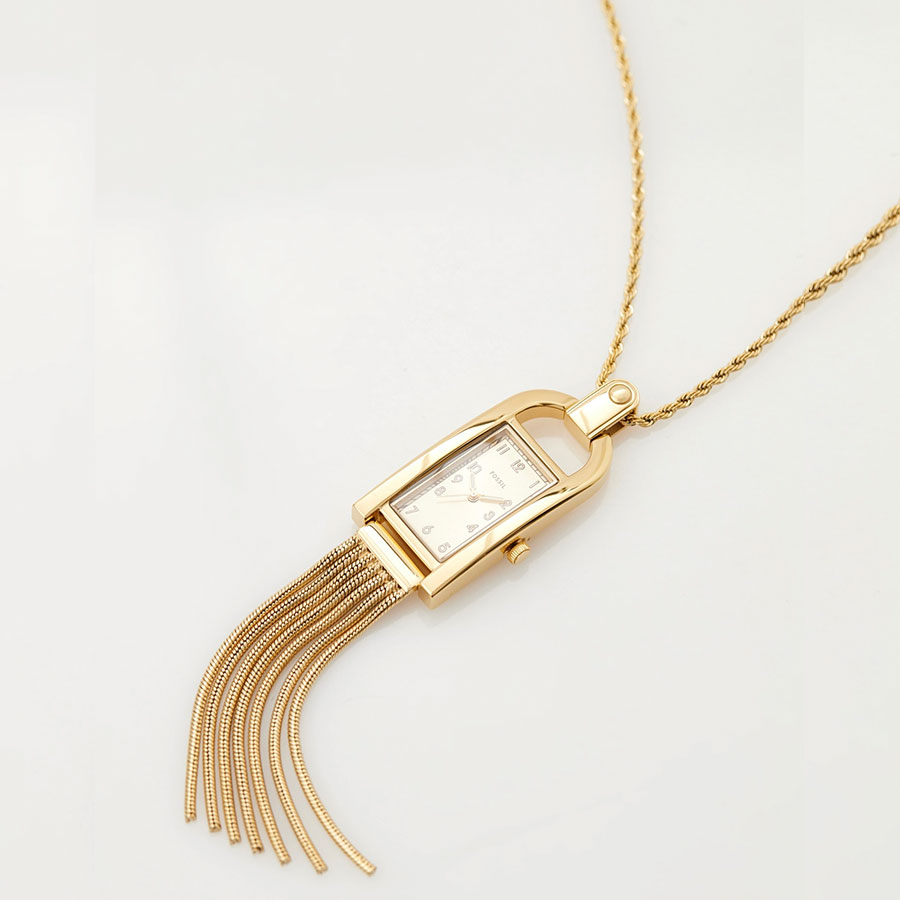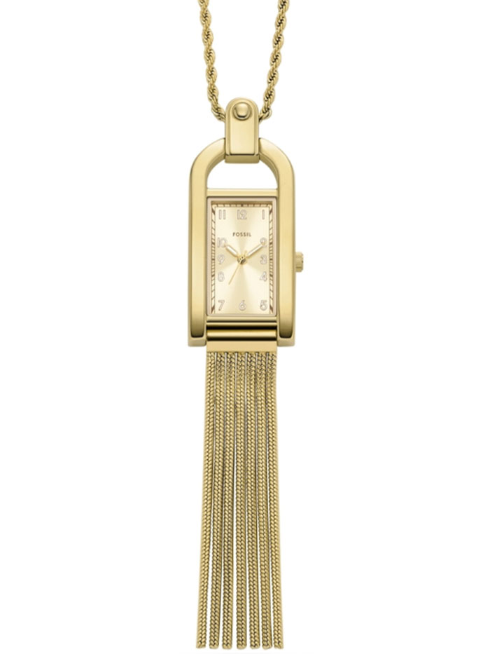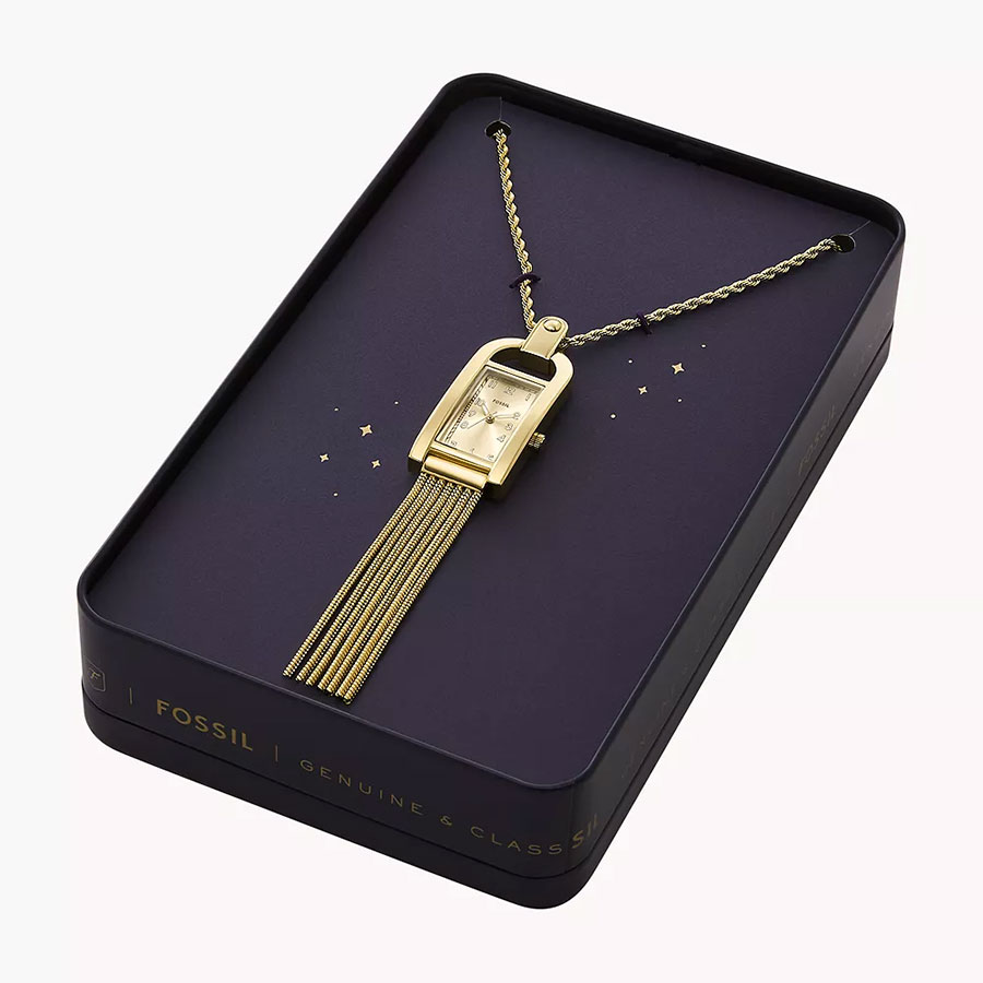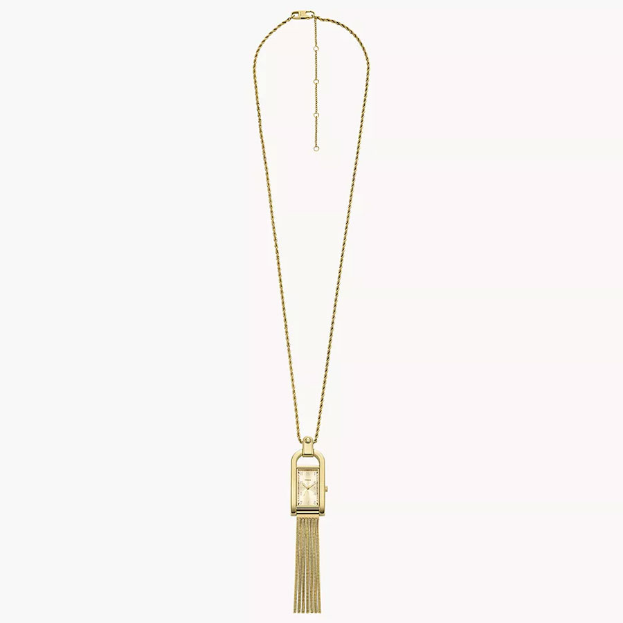 Женские кварцевые часы-ожерелье Fossil ES5373 коллекции Harwell. Циферблат выполнен по технологии Sunray (солнечные лучи). На корпус нанесено стойкое PVD покрытие. Водонепроницаемость WR (3 атм).