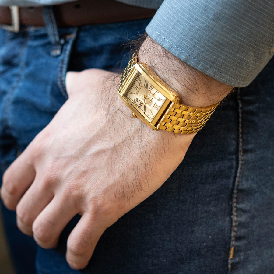 Корпус и браслет выполнены из нержавеющей стали с устойчивым PVD покрытием, что защищает поверхность от царапин и придаёт глубокий цвет. Стекло оберегает циферблат от случайных повреждений, а браслет делает посадку комфортной.