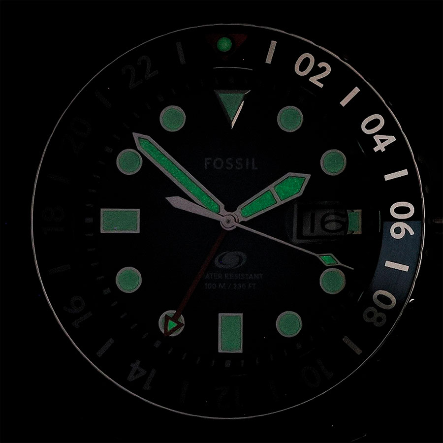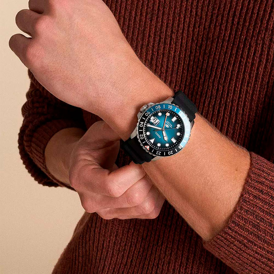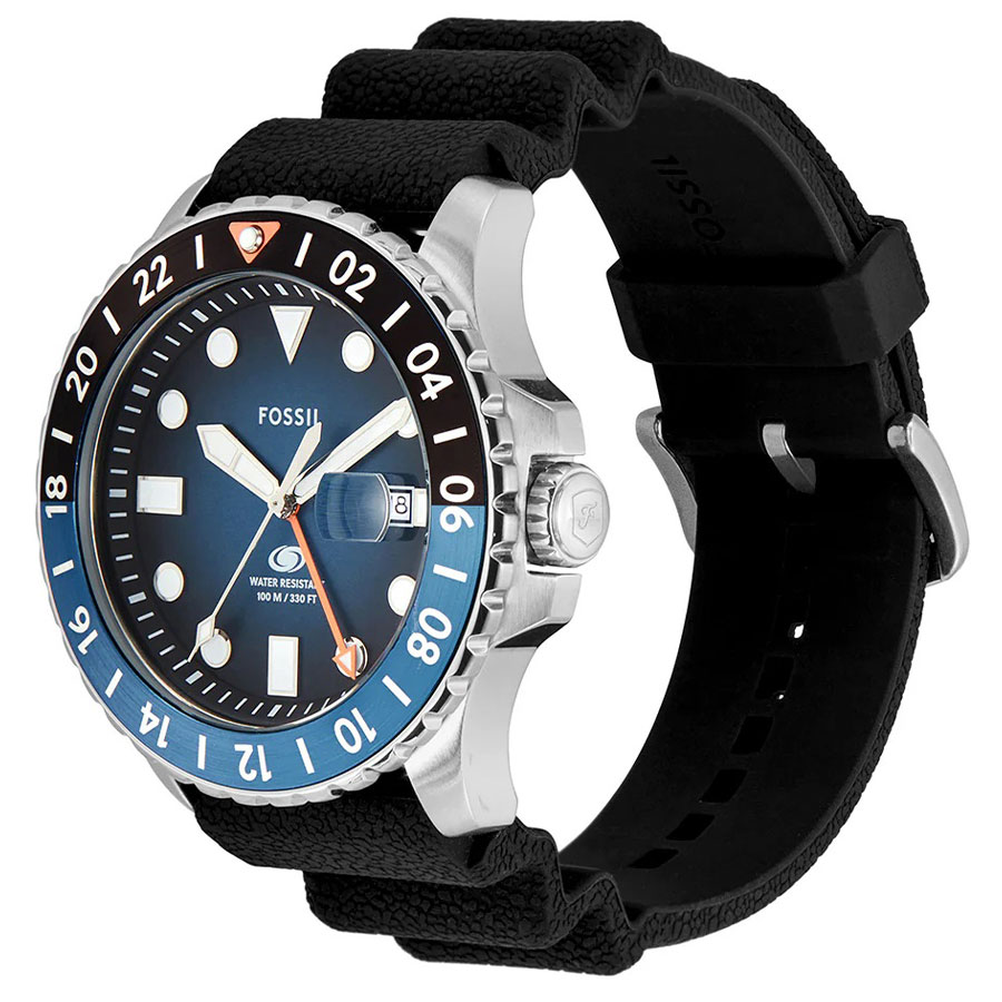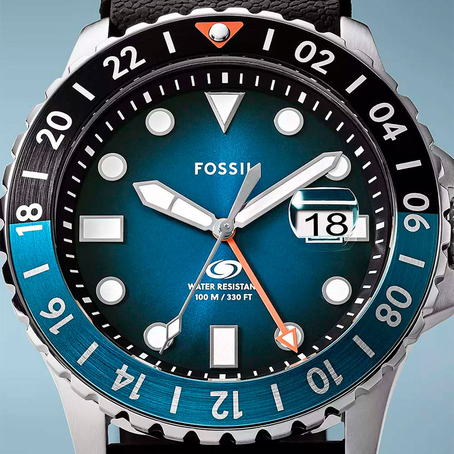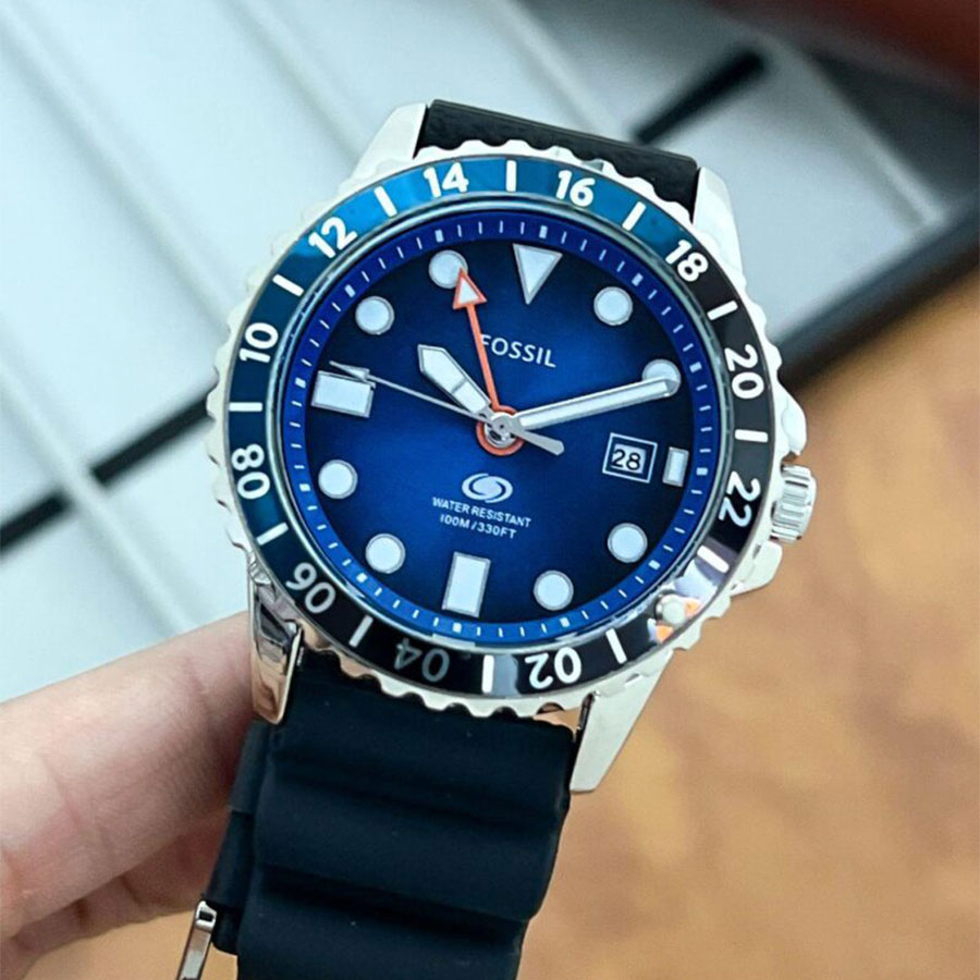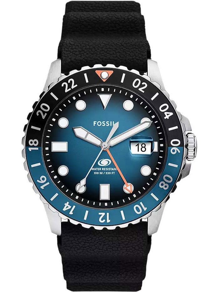 Мужские кварцевые наручные часы Fossil FS6049 коллекции Fossil Blue Dive. На данной модели отображается текущая дата. Присутствует функция GMT (время во втором часовом поясе). Полимерный ремешок. На корпус частично нанесено стойкое PVD покрытие. Завинчивающаяся задняя крышка. Водонепроницаемость WR100 (10 атм).