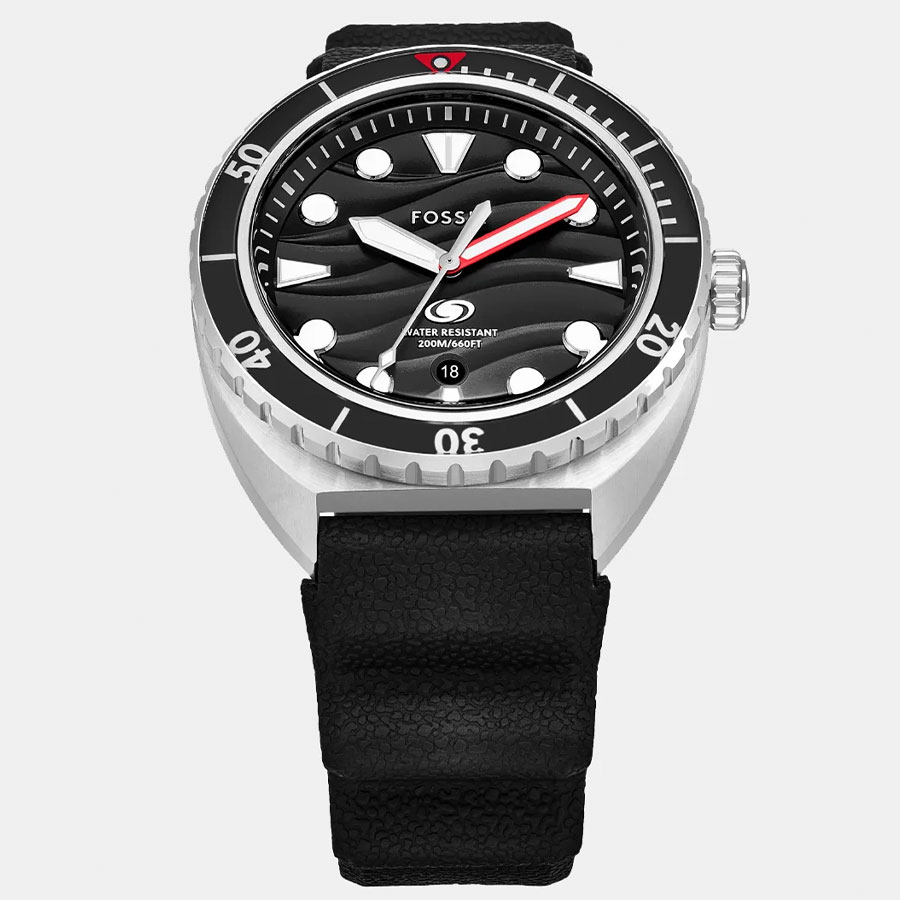 Мужские кварцевые наручные часы Fossil FS6062 коллекции Breaker. На циферблате отображается текущая дата. Полимерный ремешок. Завинчивающаяся задняя крышка. Водонепроницаемость WR200 (20 атм).