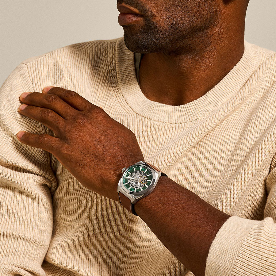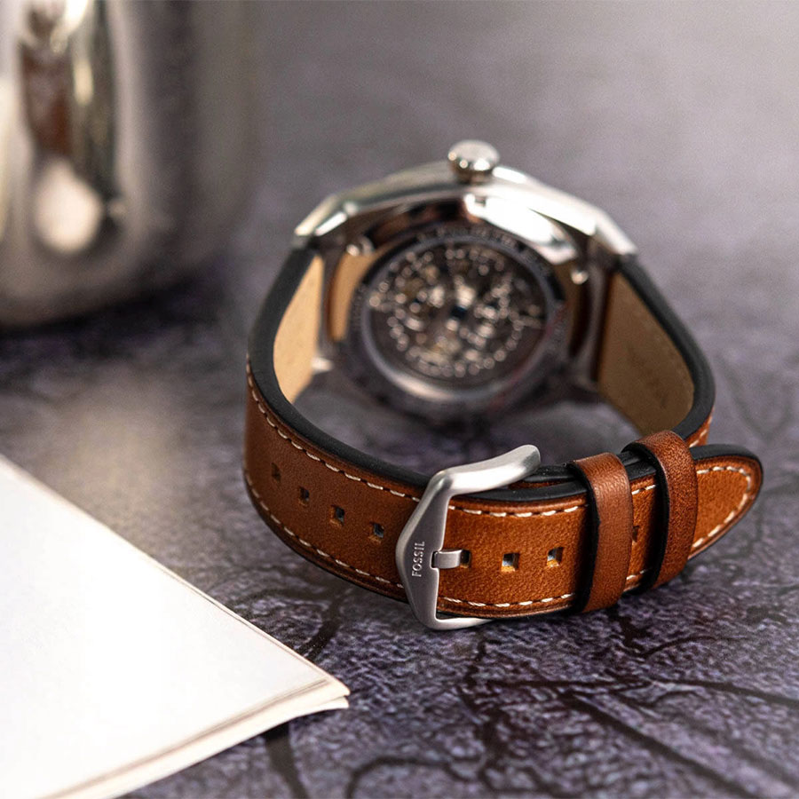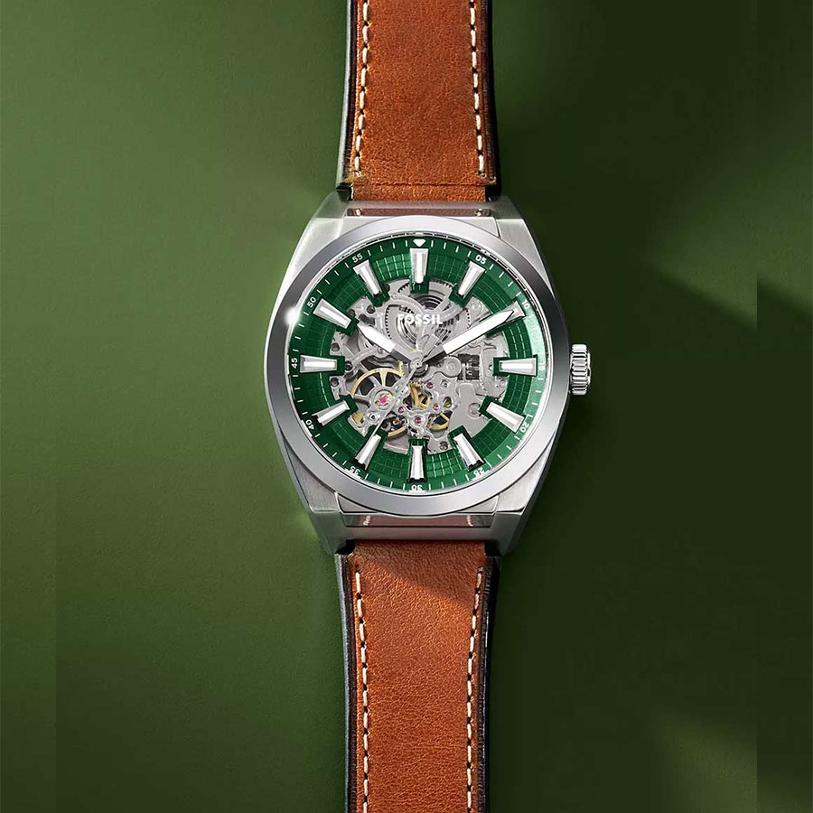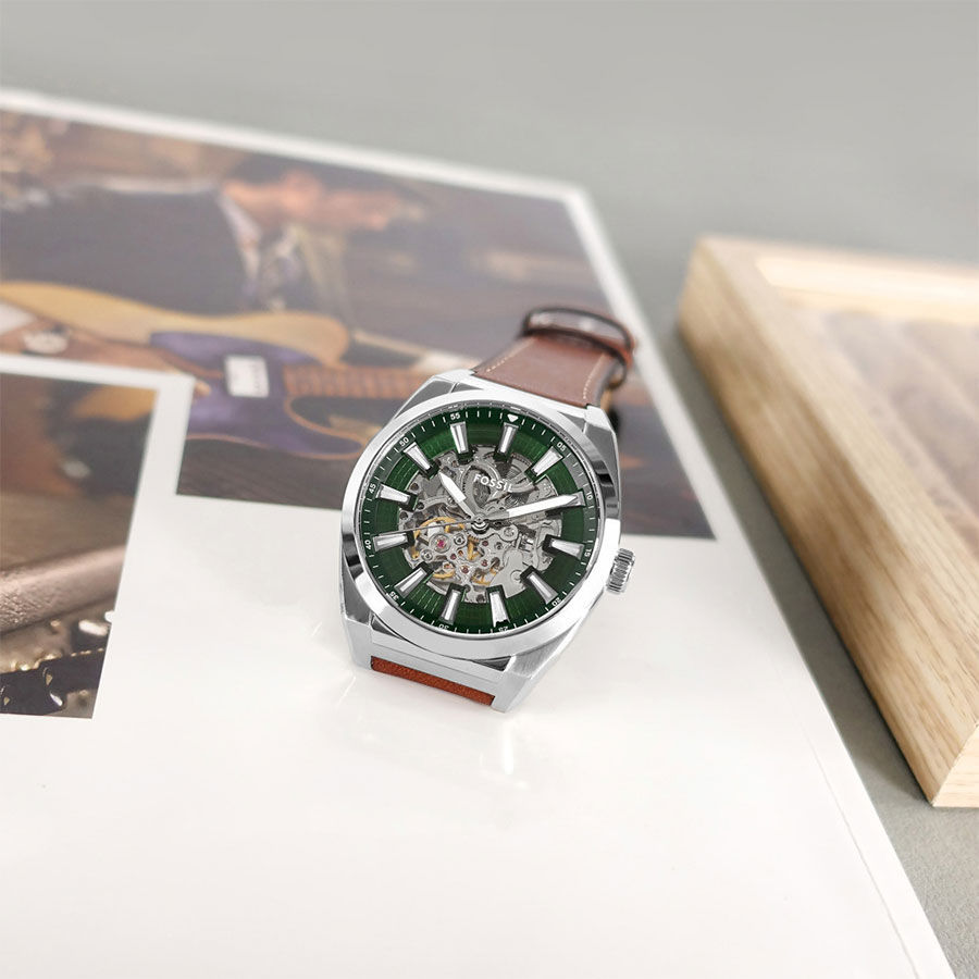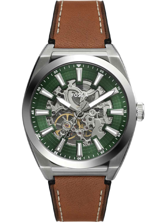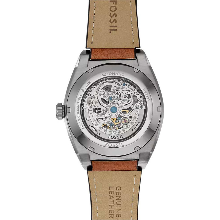 Мужские механические скелетонизированные наручные часы с автоподзаводом Fossil ME3261 коллекции Everett Automatic. Данные часы необходимо носить для обеспечения их правильного хода, так как в часах не используется батарейка, а механизм заводится при движении руки. Вращаясь, полукруглый ротор приводит в движение заводную пружину. Прозрачный циферблат (скелетон) через который видна работа механизма. Кожаный ремешок. Прозрачная задняя крышка. Водонепроницаемость WR50 (5 атм).