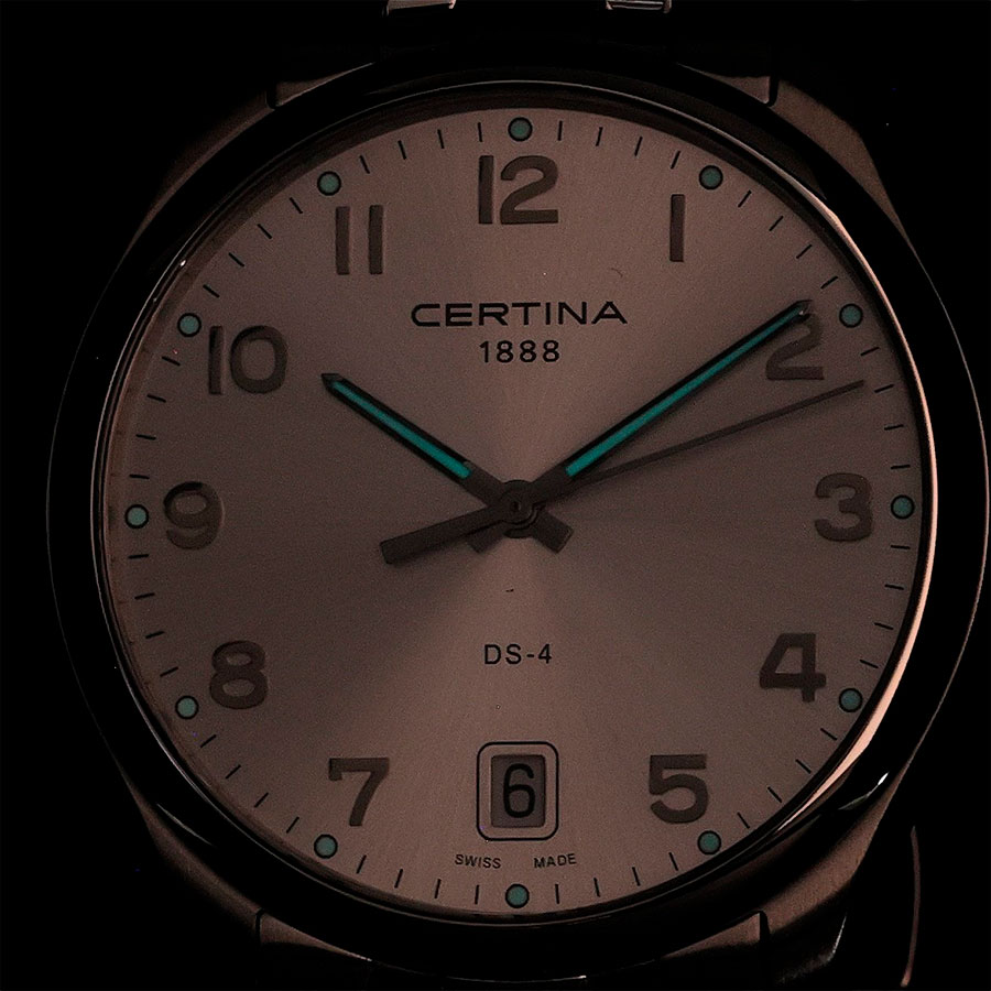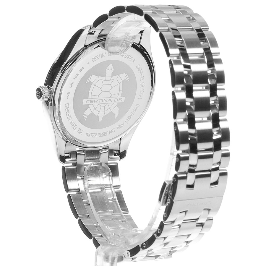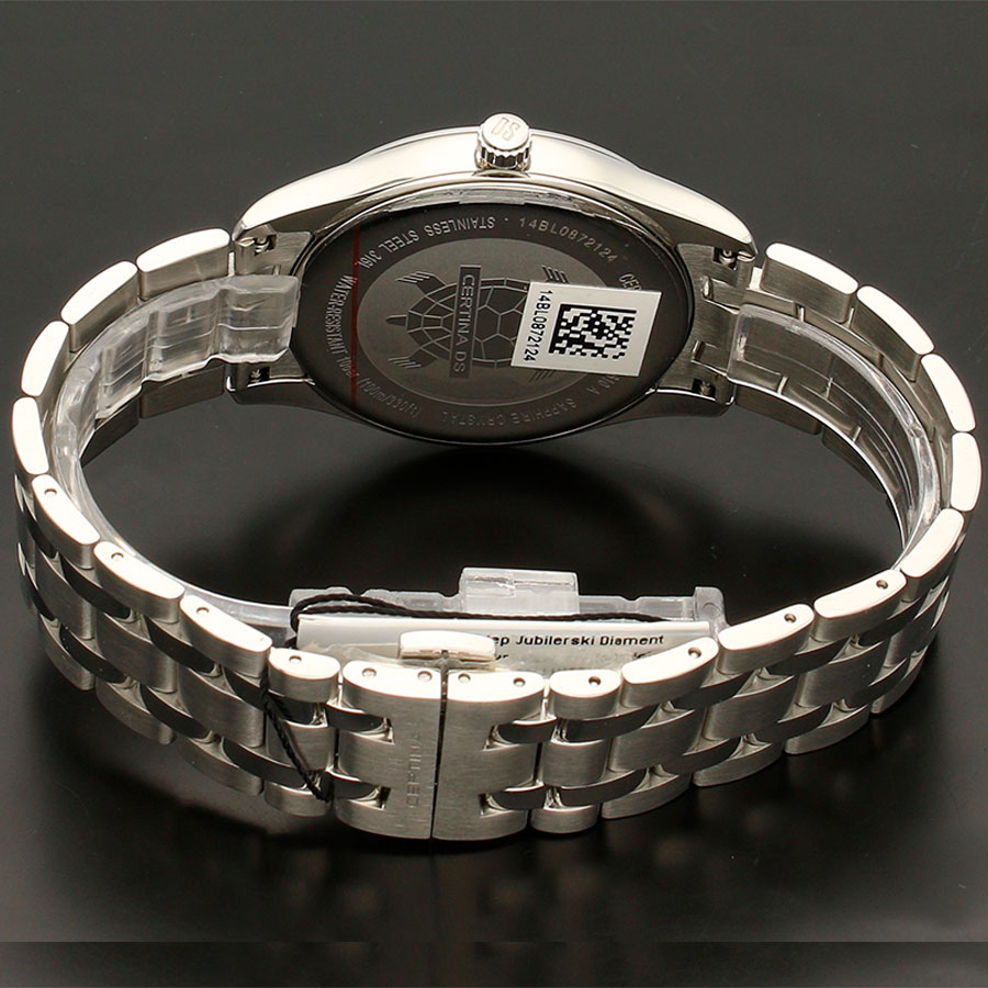 Водонепроницаемость WR100 (10 атм) позволяет использовать часы при плавании и активном отдыхе. Certina DS-4 C022.610.11.032.00 — это мужские швейцарские часы, в которых гармонично сочетаются точность, элегантность и современный характер.