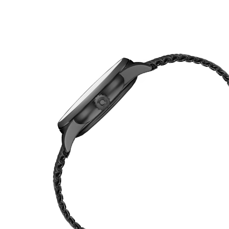 Корпус и браслет часов выполнен из нержавеющей стали с стойким PVD покрытием, придающим модели благородный оттенок и дополнительную защиту от износа. Элегантный браслет миланского плетения обеспечивает комфортное прилегание и современный внешний вид.
