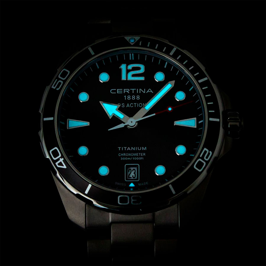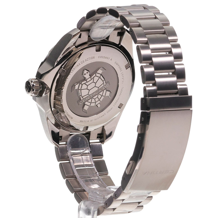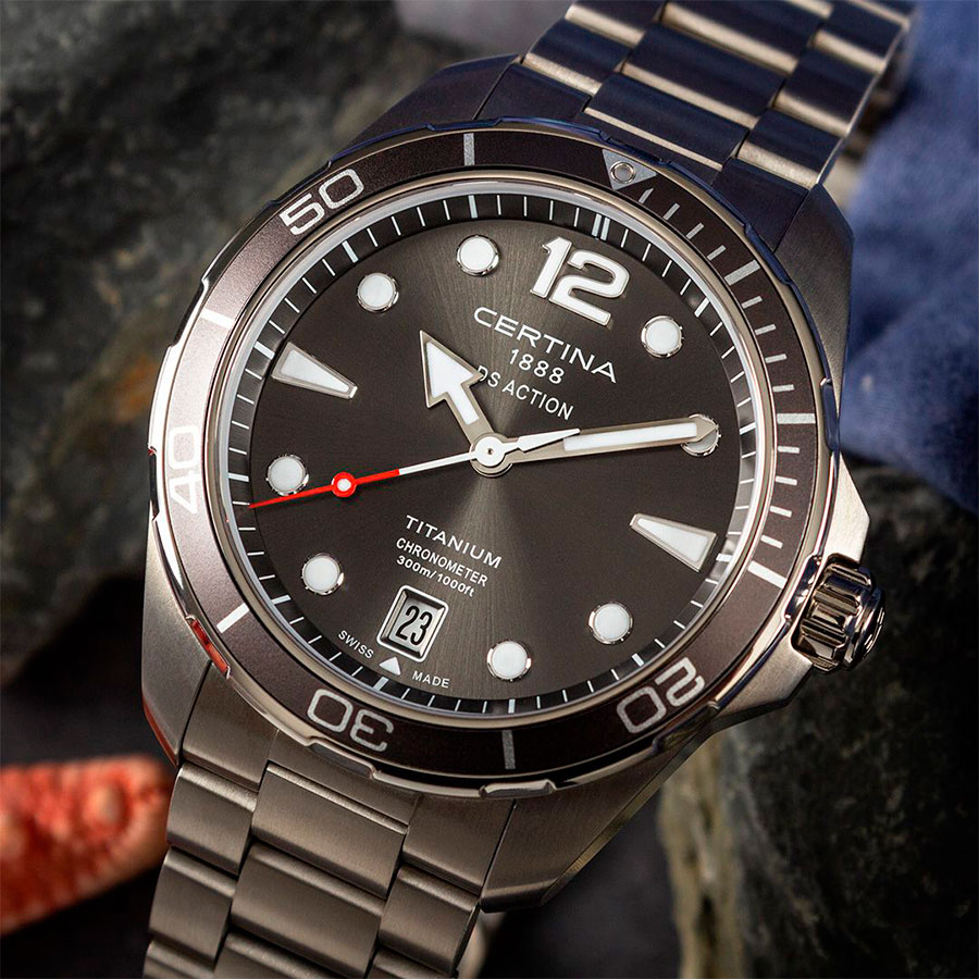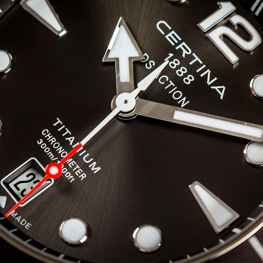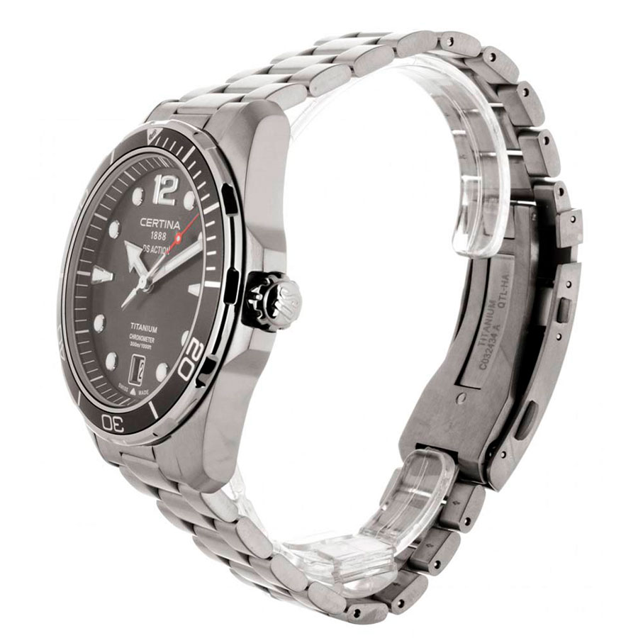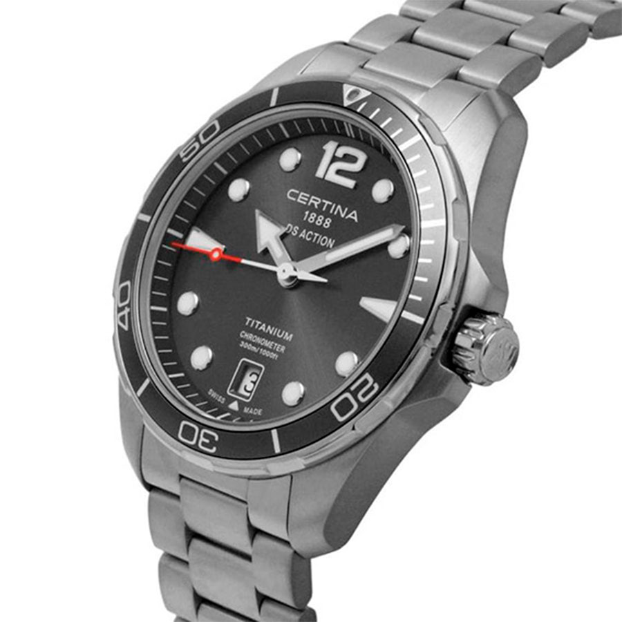 Водонепроницаемость WR300 (30 атм) делает модель идеальной для дайвинга и активного отдыха. Certina DS Action Chronometer C032.451.44.087.00 — это мужские швейцарские часы, сочетающие титановую лёгкость, точность хронометра и современный характер. Если вы хотите купить часы Certina мужские, эта модель станет вашим надёжным спутником на каждый день.