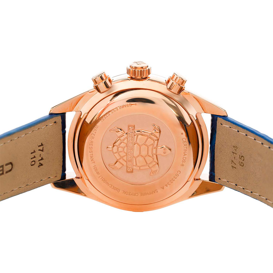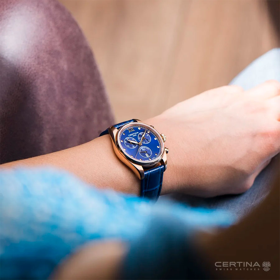 Благодаря водонепроницаемости WR100 (10 атм), часы подходят для повседневного ношения и активного отдыха. Certina DS-8 Lady Chronograph C033.234.36.048.00 — это женские швейцарские часы, объединяющие хронографическую функциональность, премиальные материалы и утончённый стиль.