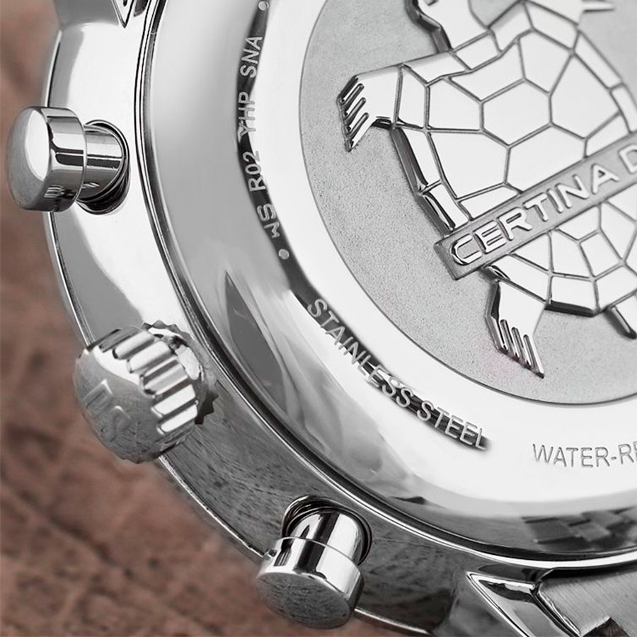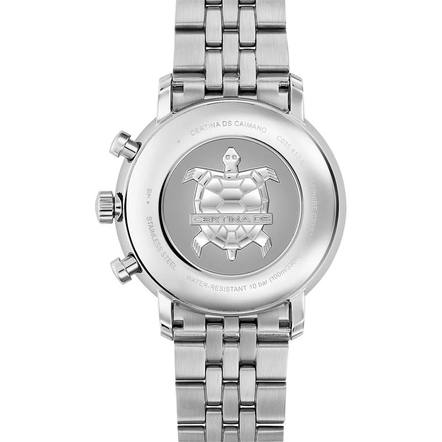Водонепроницаемость WR100 (10 атм) позволяет использовать часы при плавании и активном отдыхе. Certina DS Caimano Chronograph Chronometer C035.417.11.047.00 — это мужские швейцарские часы с хронографом, которые объединяют спортивную энергетику, премиальные материалы и безупречную точность.