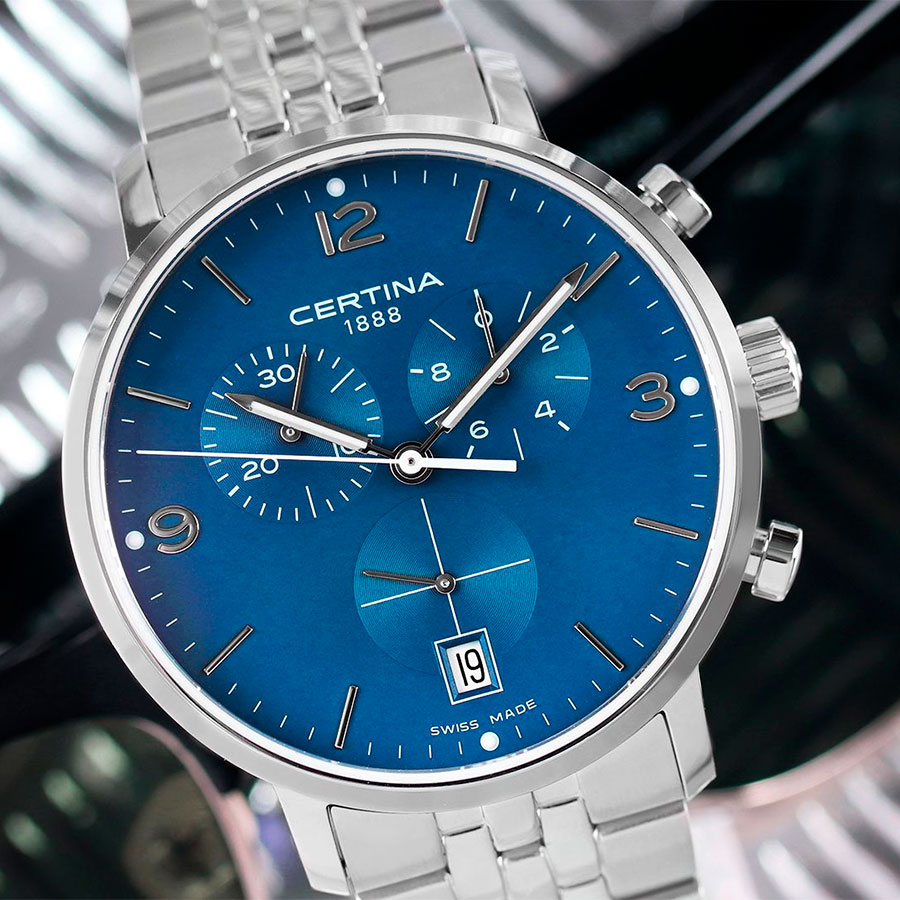 Мужские часы Certina DS Caimano Chronograph Chronometer C035.417.11.047.00 воплощают истинную швейцарскую точность, надёжность и утончённый спортивный стиль. Эта модель сертифицирована COSC — официальным Швейцарским институтом хронометрии, что подтверждает исключительную стабильность хода и высокую точность механизма.
