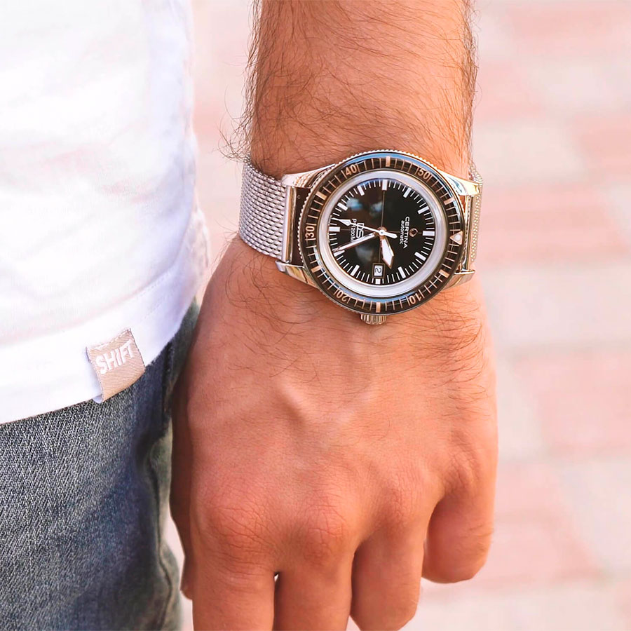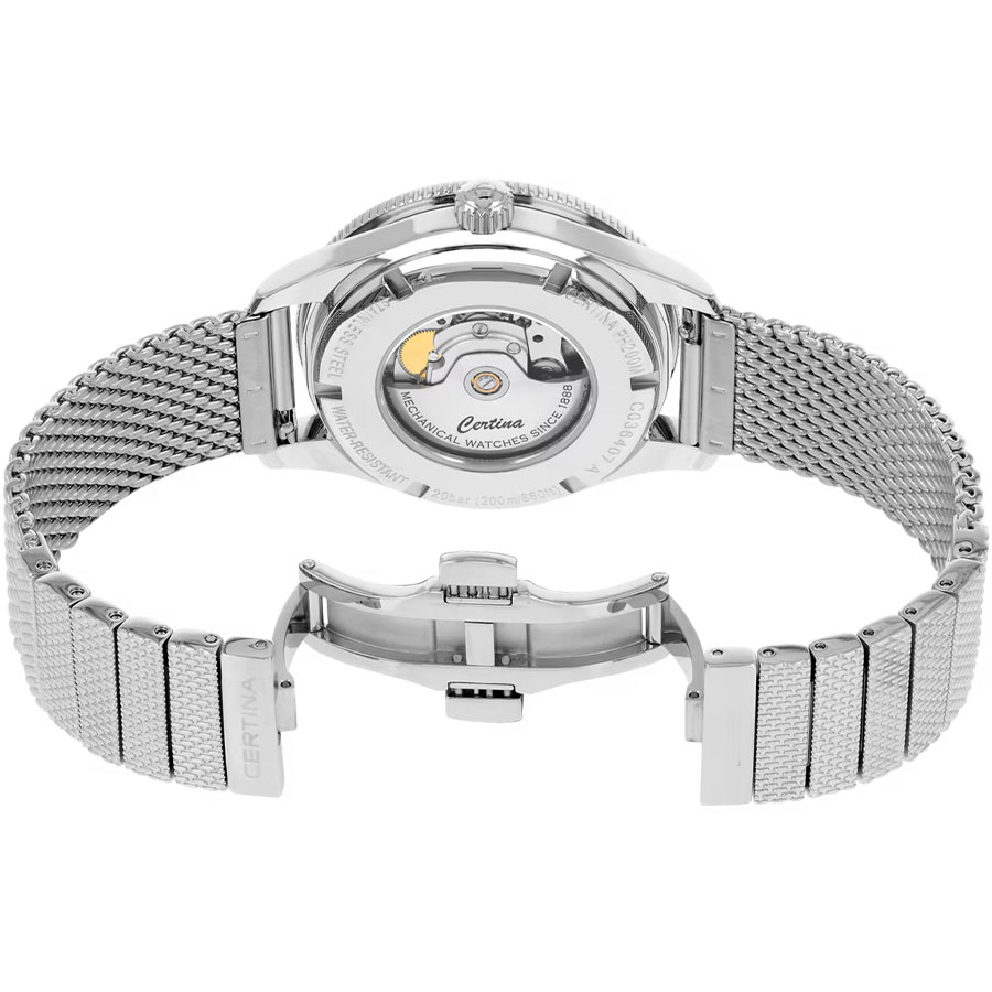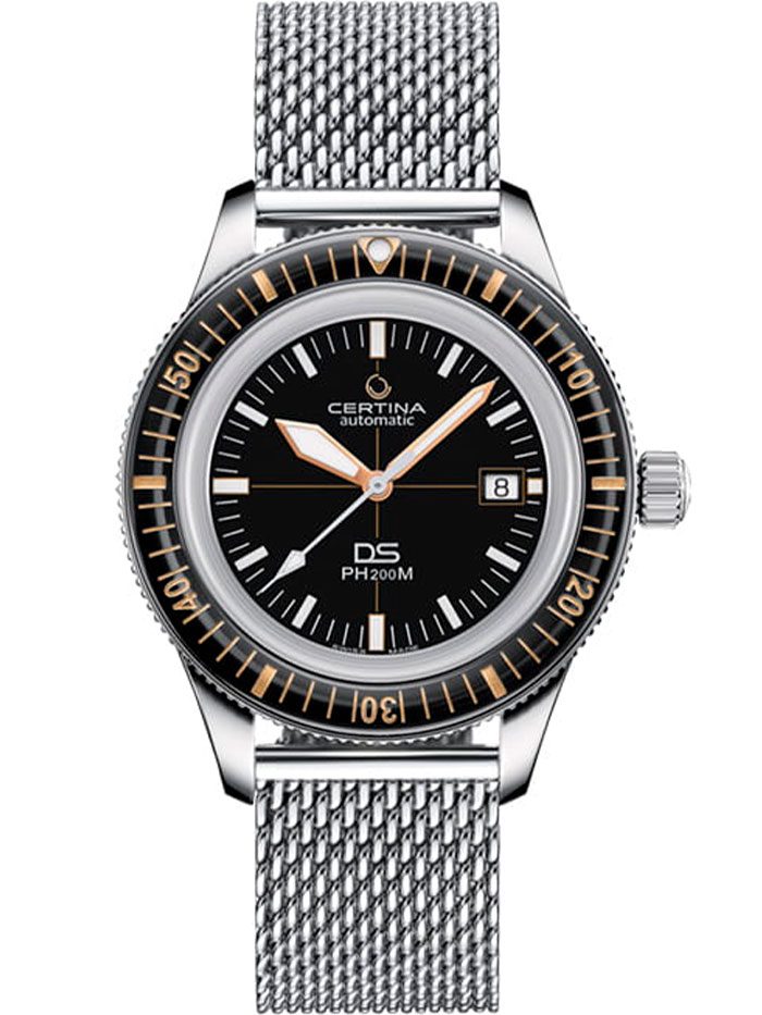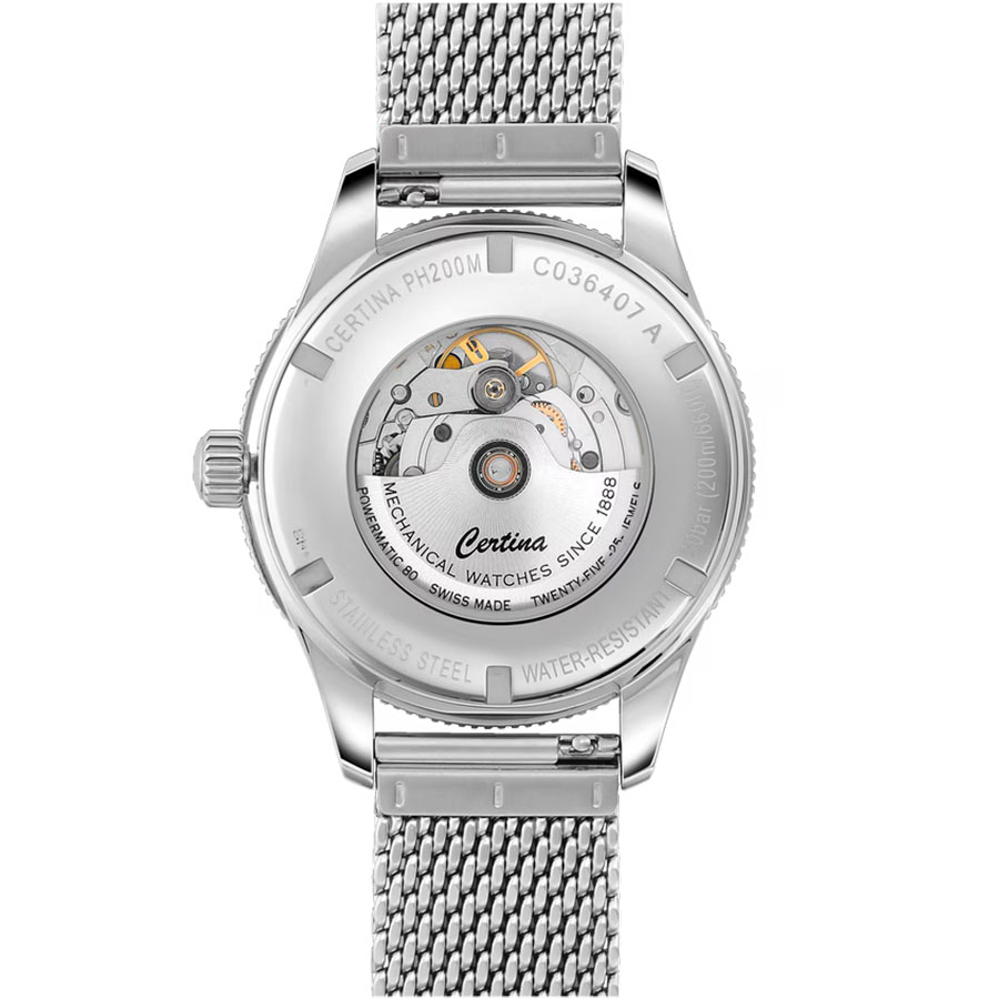 Водозащита WR200 (20 атм) делает модель пригодной для плавания и погружений. Certina DS PH200M C036.407.11.050.01 — это швейцарские механические часы, в которых классика 60-х гармонично сочетается с технологиями XXI века.