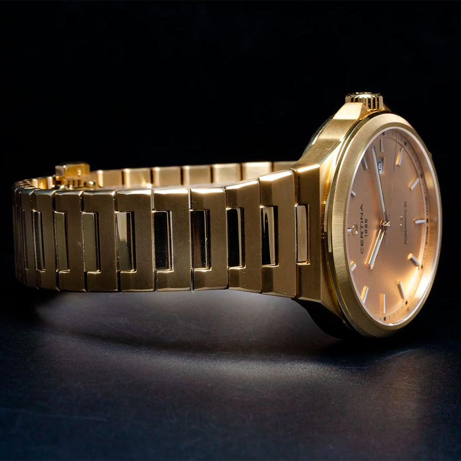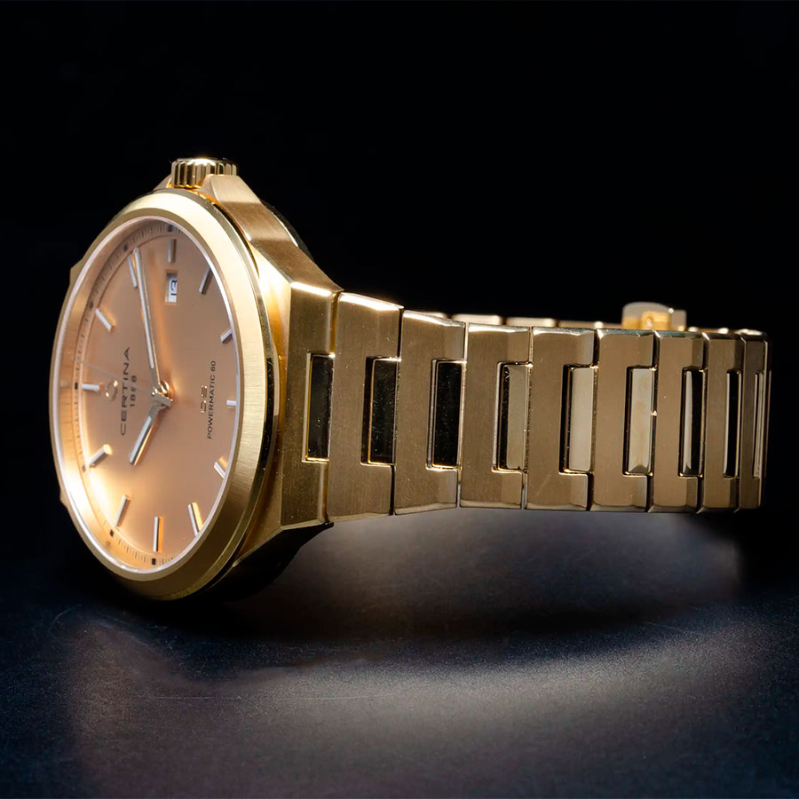 Корпус и литой браслет выполнены из нержавеющей стали с надёжным PVD покрытием, придающим модели насыщенный цвет и дополнительную защиту от износа. Удобная автоматическая застёжка-клипса «бабочка» обеспечивает комфортную посадку на запястье. Стрелки и метки покрыты люминесцентным составом Super-LumiNova, благодаря чему время легко считывается даже в темноте.