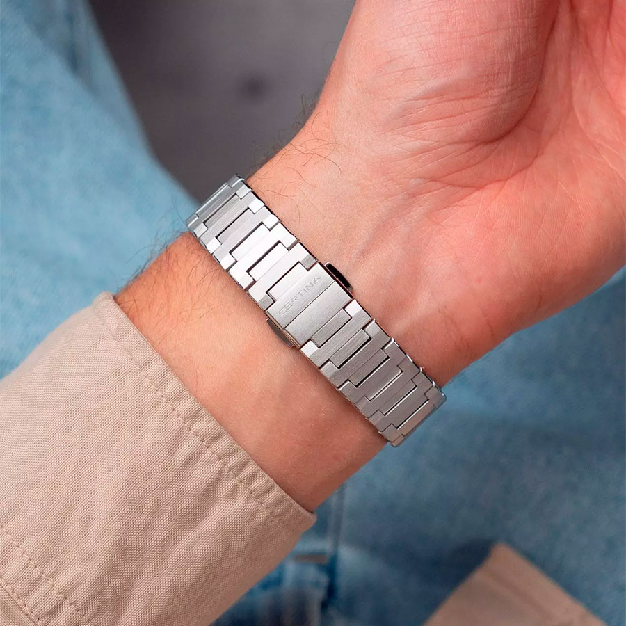 Мужские часы Certina DS-7 C043.410.11.091.00 — современная интерпретация швейцарской точности в стильном исполнении. Модель сочетает надёжность, минимализм и премиальные материалы, подчёркивая уверенный характер владельца.