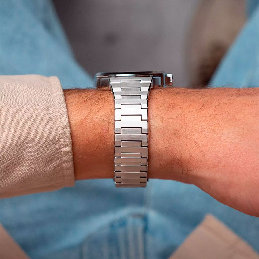 Корпус и браслет изготовлены из нержавеющей стали, что придаёт модели прочность и современный внешний вид. Застёжка-клипса «бабочка» обеспечивает комфортное и надёжное ношение, а завинчивающаяся задняя крышка повышает герметичность корпуса.