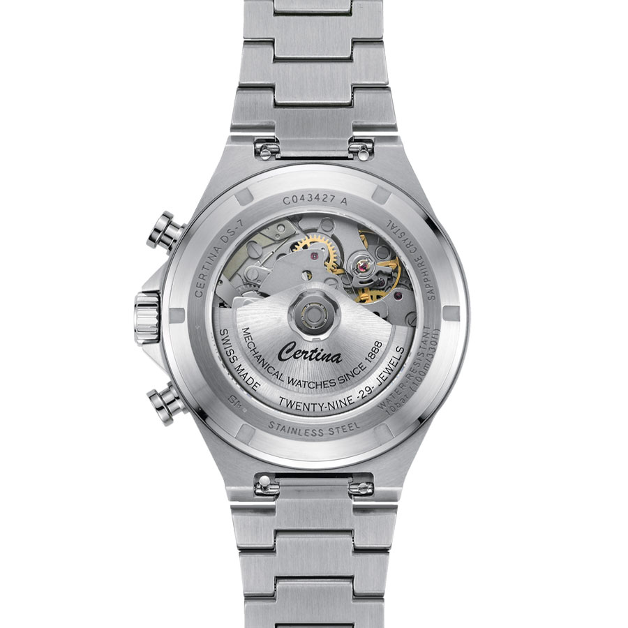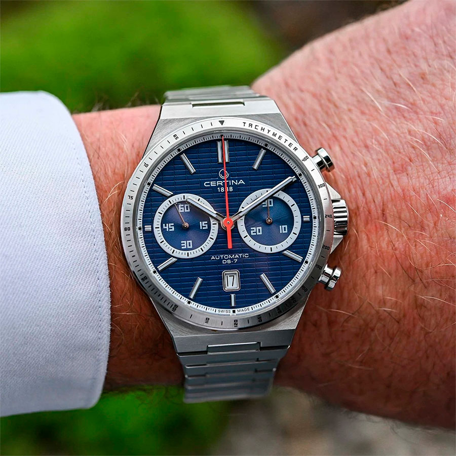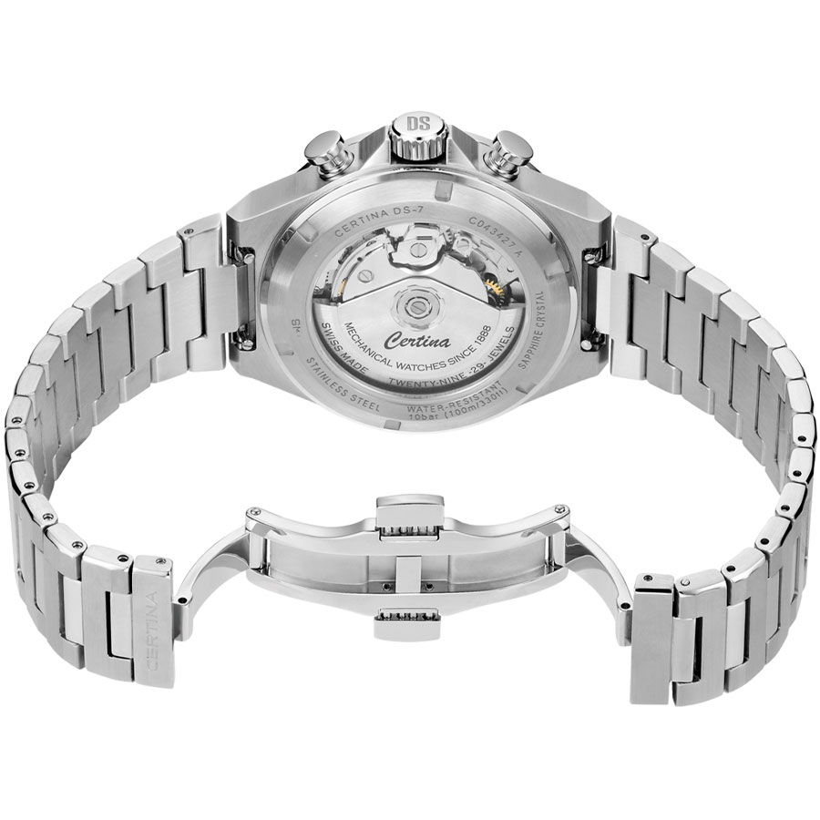 Водонепроницаемость WR100 (10 атм) делает часы подходящими для плавания и активного отдыха. Certina DS-7 Chrono Auto C043.427.11.041.00 — это мужские швейцарские часы с автоподзаводом и хронографом, воплощающие точность, силу и современный стиль.