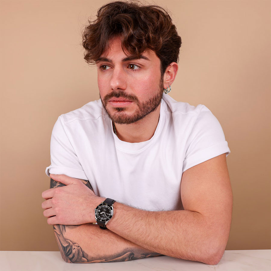 Корпус модели имеет вращающийся безель, на который частично нанесено стойкое PVD-покрытие, подчёркивающее динамичный характер дизайна.