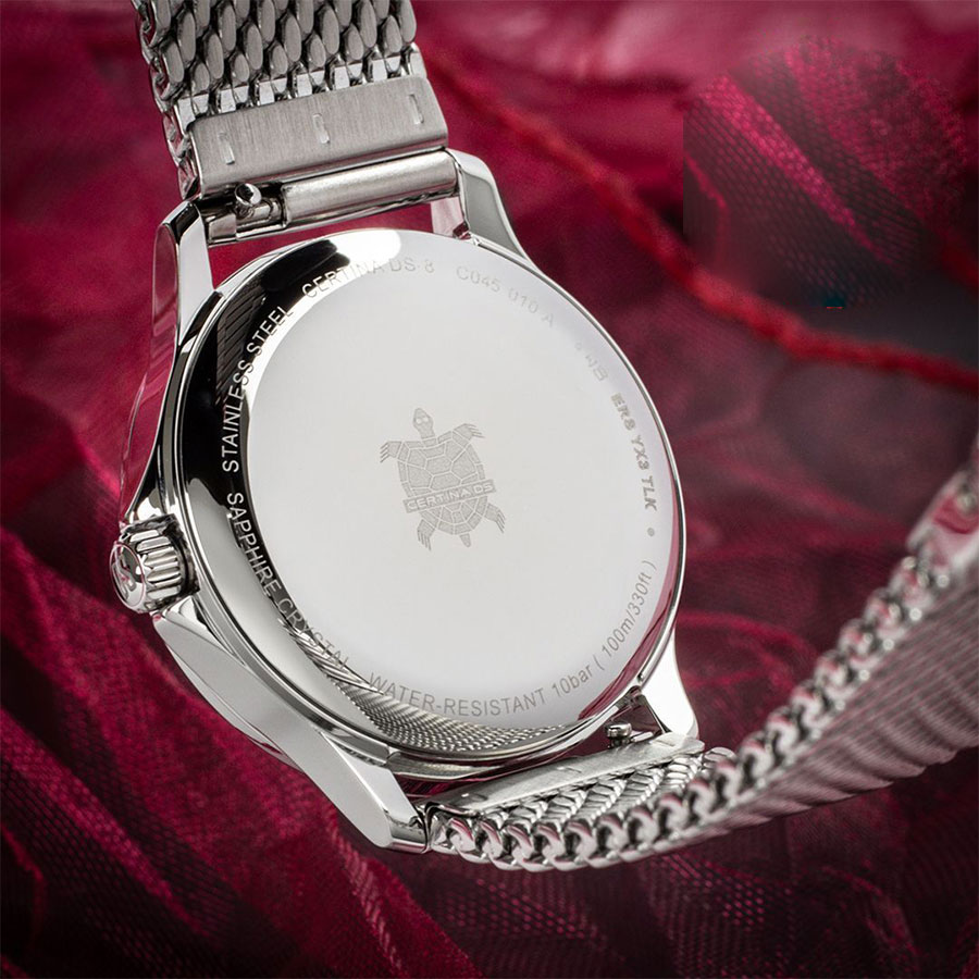 Благодаря водонепроницаемости WR100 (10 атм), часы устойчивы к влаге и подходят для плавания и повседневного ношения. Certina DS-8 Lady 31mm C045.010.11.331.00 — это идеальный выбор для женщин, ценящих швейцарское качество, элегантность и функциональность.