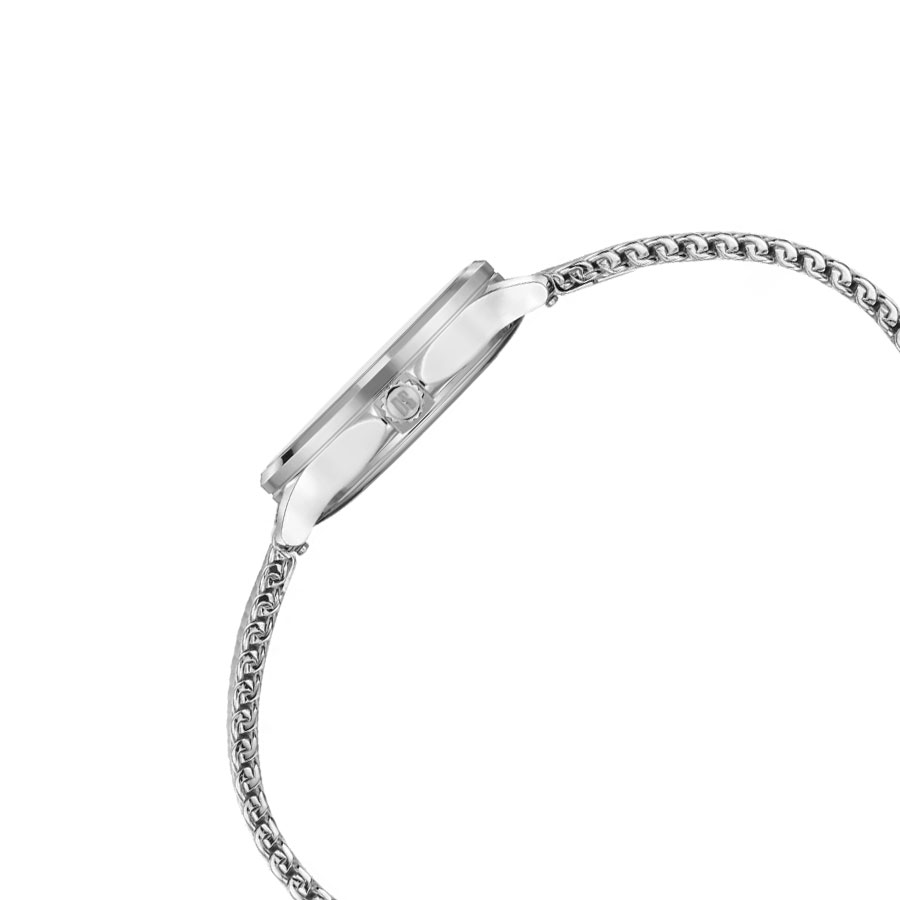 Корпус из нержавеющей стали придаёт модели прочность и блеск, а браслет миланского плетения добавляет утончённости и комфорта при ношении.
