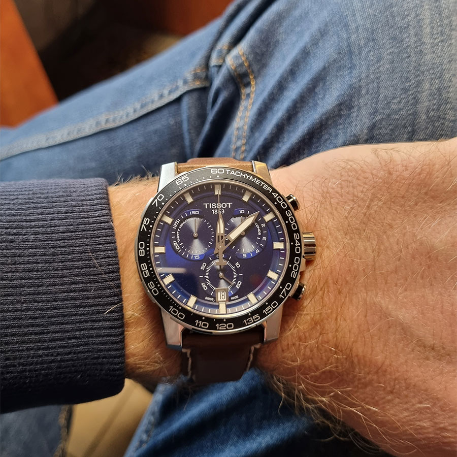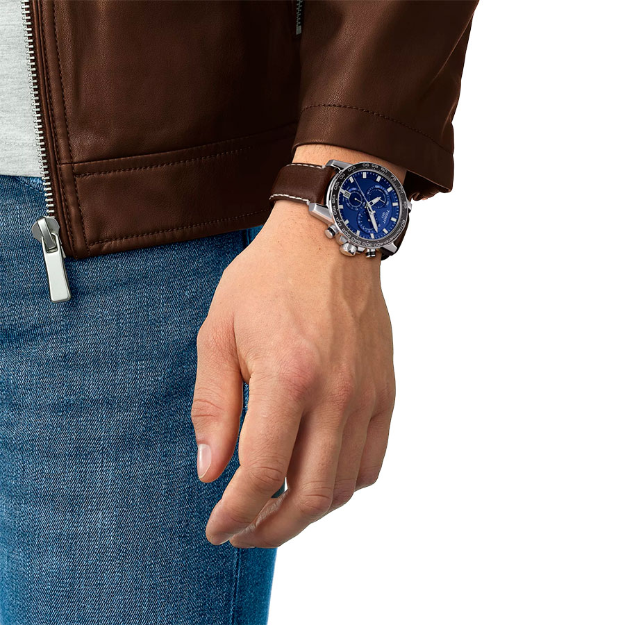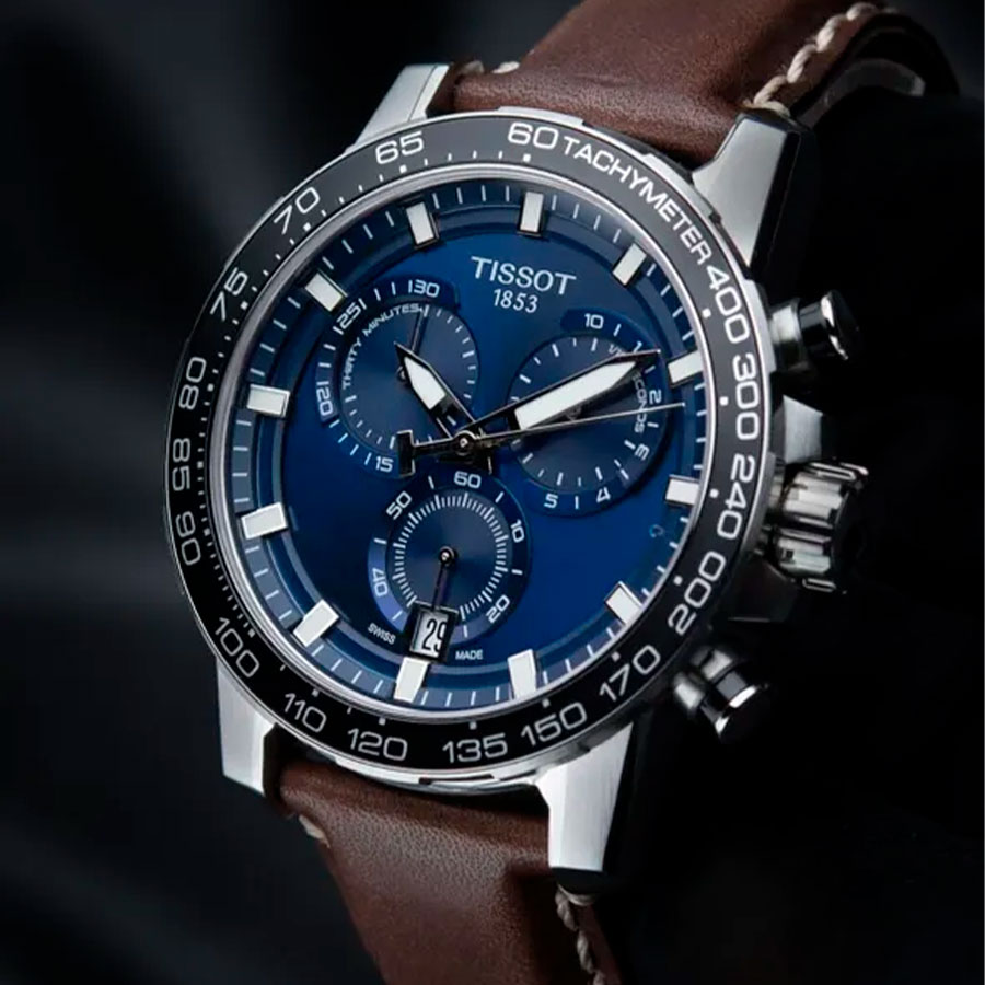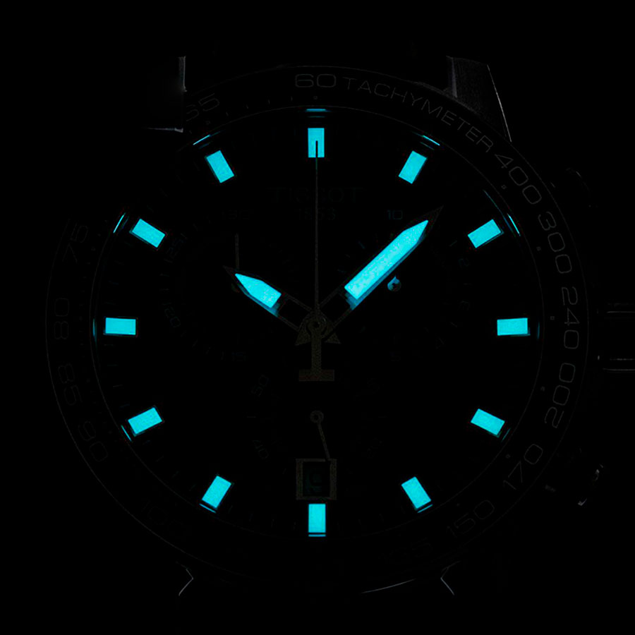 Мужские кварцевые наручные часы с хронографом (секундомером) TISSOT SuperSport Chrono T125.617.16.041.00 коллекции T Sport. Калибр механизма — ETA G10.212. На данной модели отображается текущая дата. Секундомер может отсчитывать до 29 минут 59 секунд. На безеле присутсвует шкала тахиметра для измерения средней скорости движения. Стрелки и метки покрыты люминесцентным напылением Super-LumiNova® (светятся в темноте). Сапфировое стекло с антибликовым покрытием, устойчивое к появлению царапин. Кожаный ремешок. На корпус частично нанесено стойкое PVD покрытие. Водонепроницаемость WR100 (10 атм). Размеры корпуса: (ШxТ) 45.5х12 мм. Гарантийный срок — 3 года (1 год от производителя + 2 года от магазина).