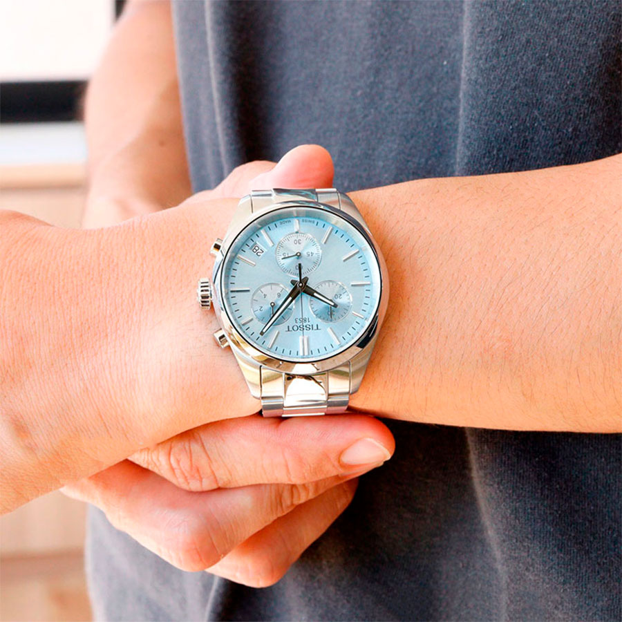 Мужские кварцевые наручные часы с хронографом (секундомером) TISSOT PR 100 Chronograph T150.417.11.351.00 коллекции T Classic. Калибр механизма — ETA G10.212. На данной модели отображается текущая дата. Секундомер может отсчитывать до 29 минут 59 секунд. Стрелки и метки покрыты люминесцентным напылением Super-LumiNova® (светятся в темноте). Сапфировое стекло с антибликовым покрытием, устойчивое к появлению царапин. Стальной браслет. Водонепроницаемость WR100 (10 атм). Размеры корпуса: (ШxТ) 40х11.3 мм. Гарантийный срок — 3 года (1 год от производителя + 2 года от магазина).