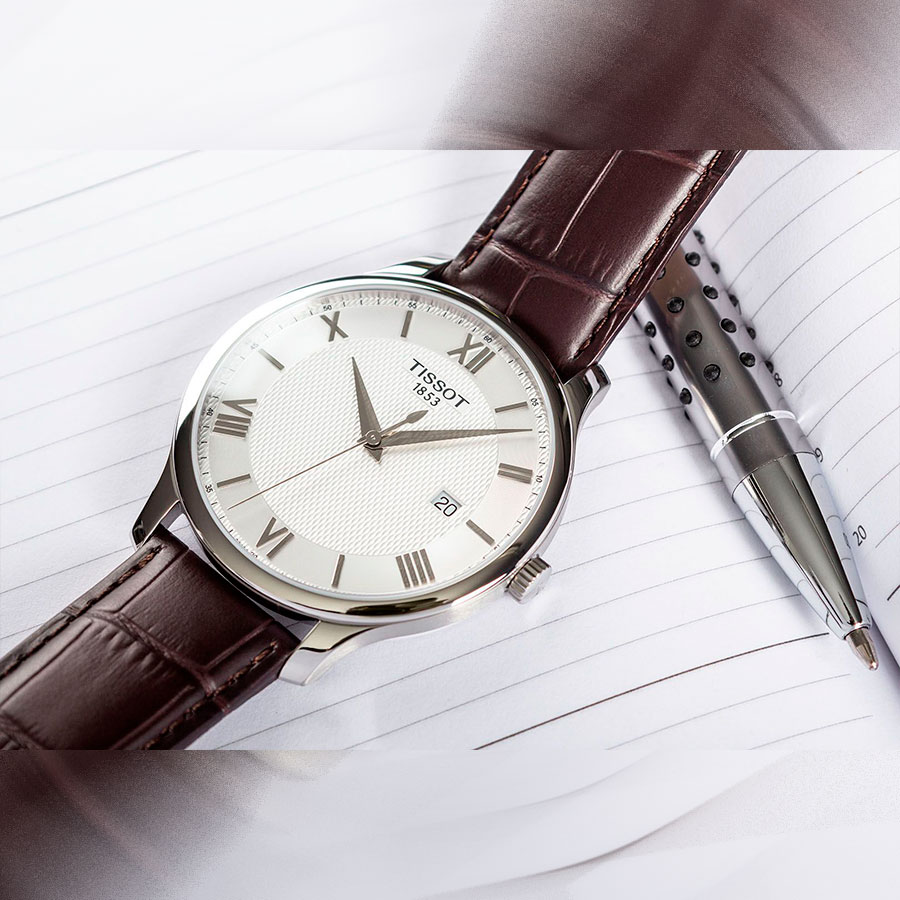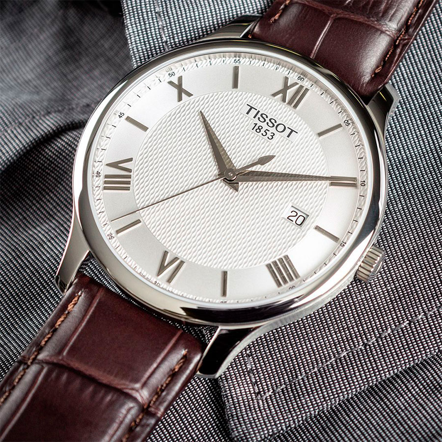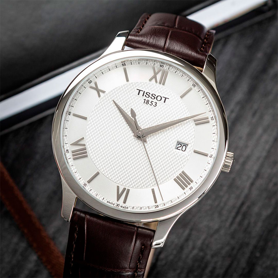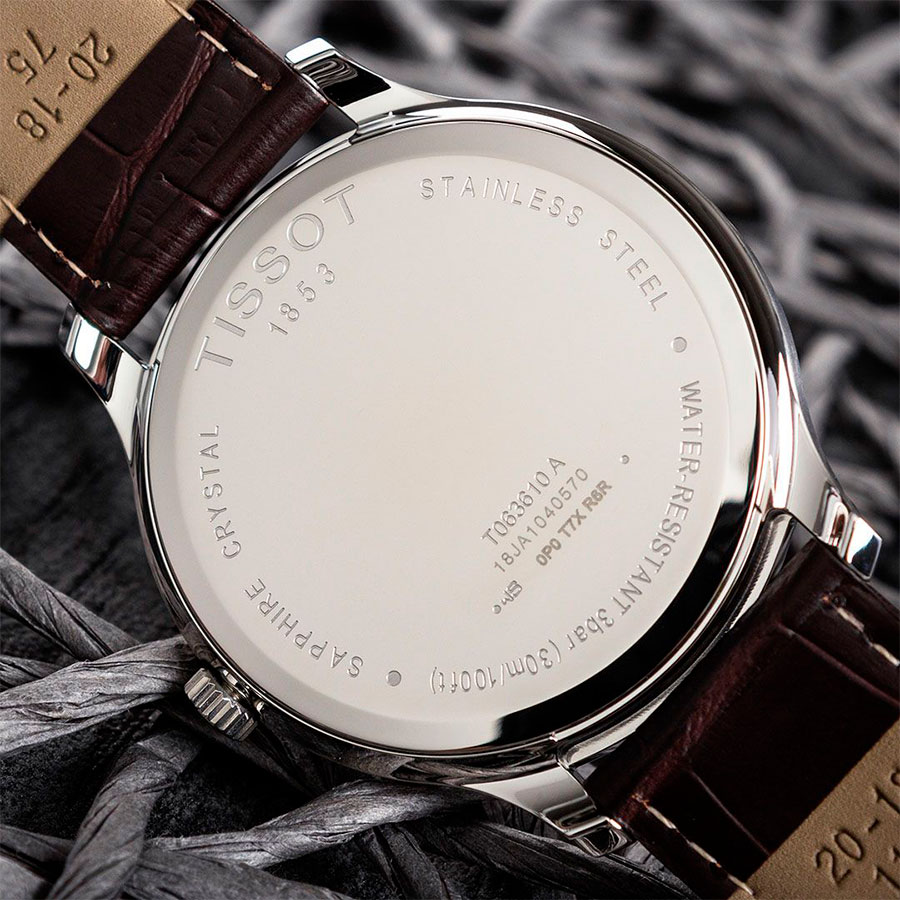 Мужские кварцевые наручные часы TISSOT Tradition T063.610.16.038.00 коллекции T Classic. Калибр механизма — ETA F06.111. На данной модели отображается текущая дата. Сапфировое стекло с антибликовым покрытием, устойчивое к появлению царапин. Кожаный ремешок. Водонепроницаемость WR (3 атм). Размеры корпуса: (ШxТ) 42x7 мм. Гарантийный срок — 3 года (1 год от производителя + 2 года от магазина).