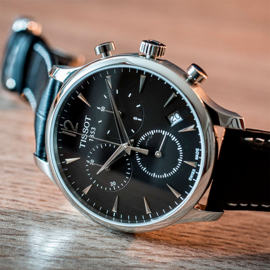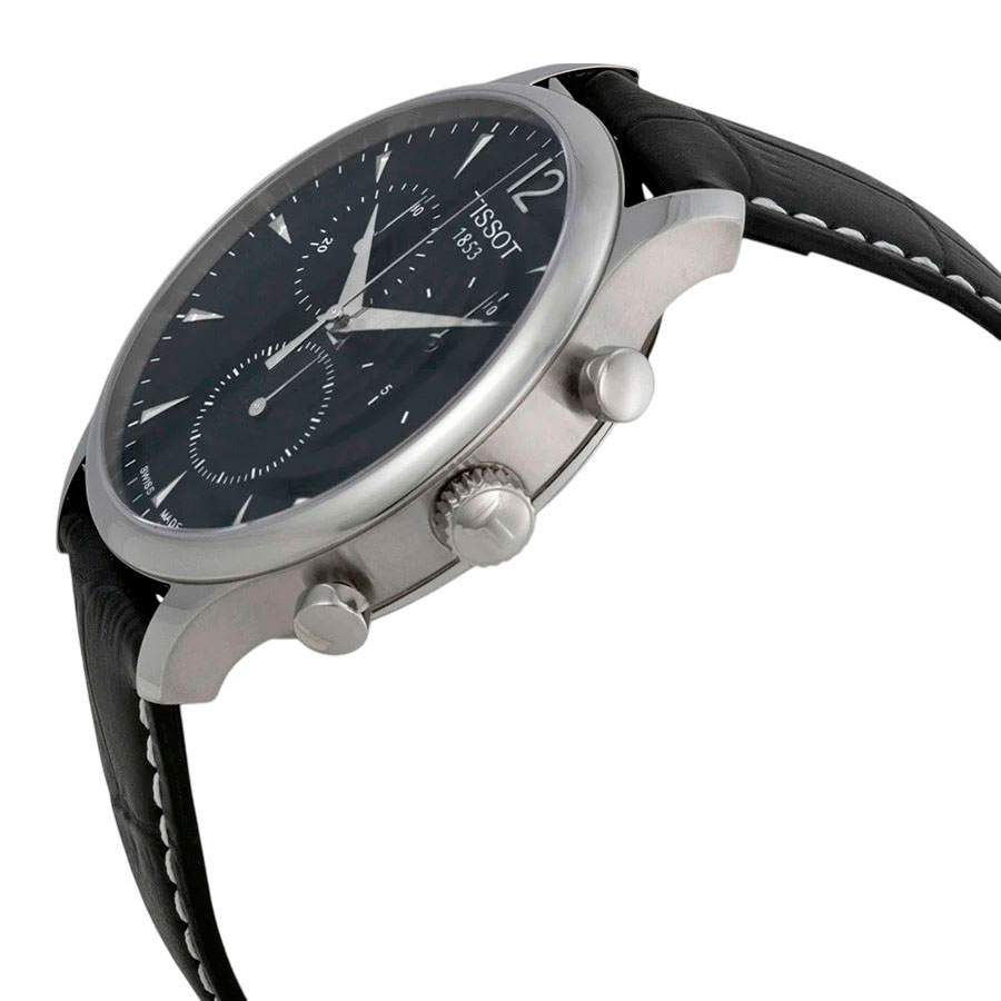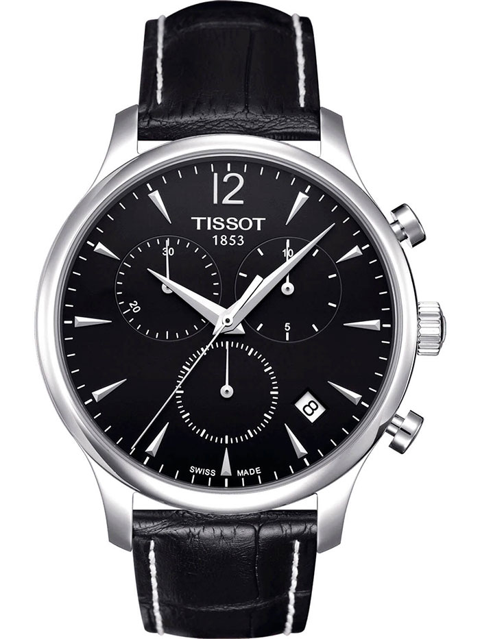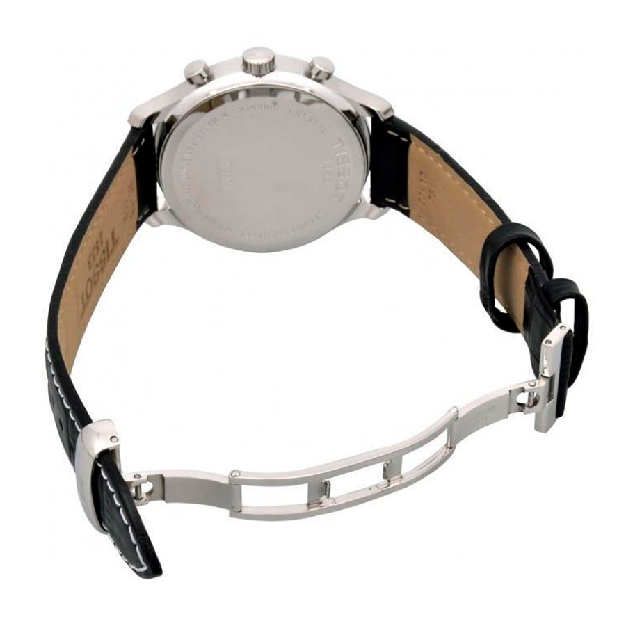 Мужские кварцевые наручные часы с хронографом (секундомером) TISSOT Tradition Chronograph T063.617.16.057.00 коллекции T Classic. Калибр механизма — ETA G10.211. На данной модели отображается текущая дата. Секундомер может отсчитывать до 29 минут 59 секунд. Сапфировое стекло с антибликовым покрытием, устойчивое к появлению царапин. Кожаный ремешок. Водонепроницаемость WR (3 атм). Размеры корпуса: (ШxТ) 42x11 мм. Гарантийный срок — 3 года (1 год от производителя + 2 года от магазина).