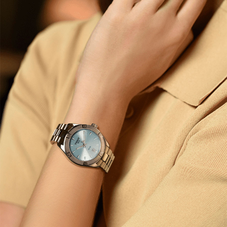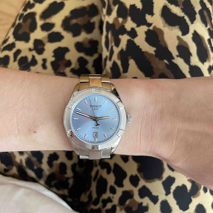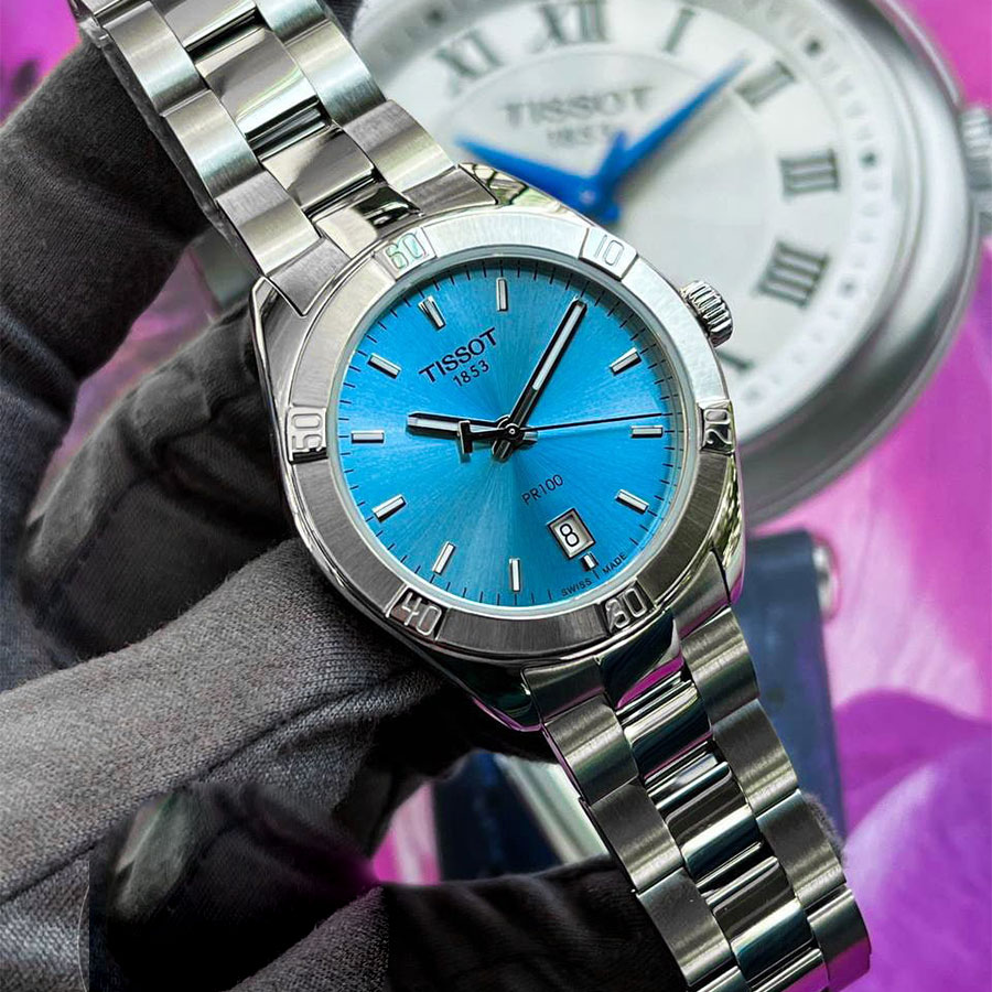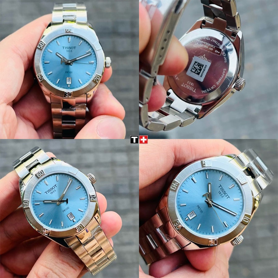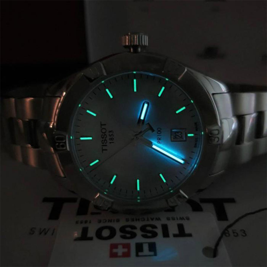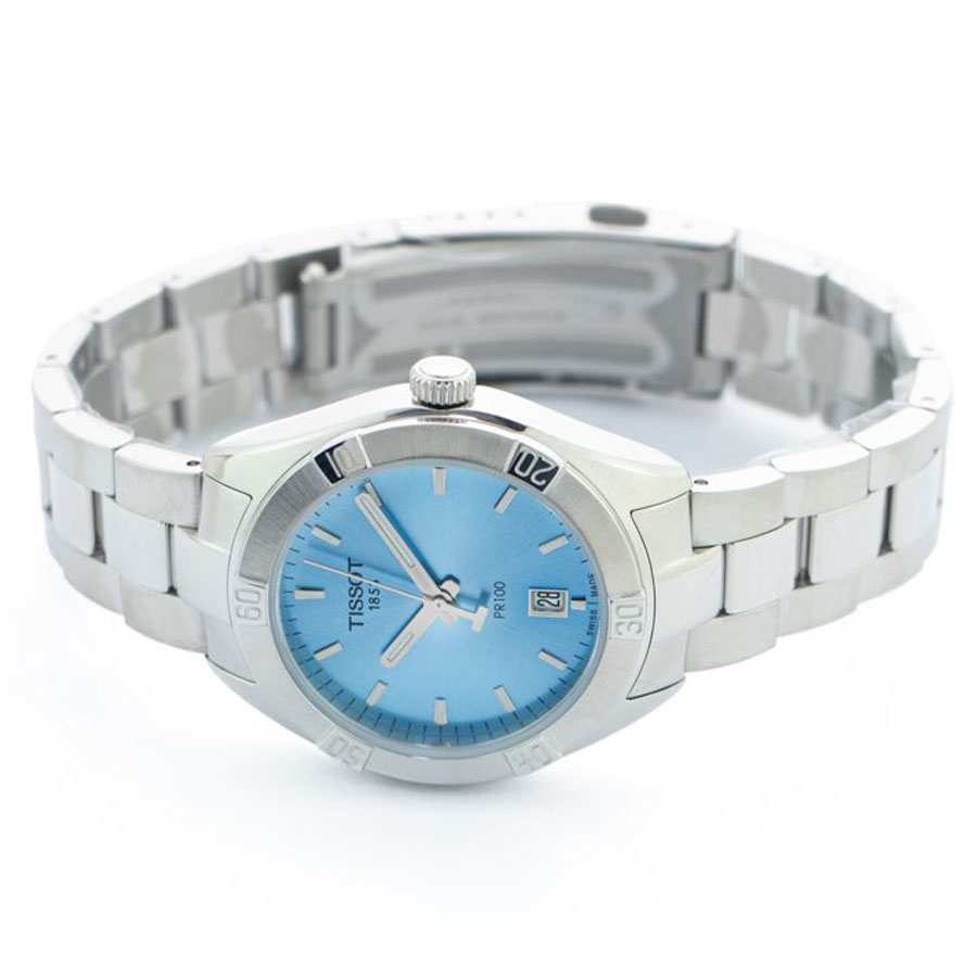Женские кварцевые наручные часы TISSOT PR 100 Sport Chic T101.910.11.351.00 коллекции T Classic. Калибр механизма — ETA 955.412. На данной модели отображается текущая дата. Стрелки и метки покрыты люминесцентным напылением (светятся в темноте). Сапфировое стекло с антибликовым покрытием, устойчивое к появлению царапин. Стальной браслет. Водонепроницаемость WR100 (10 атм). Размеры корпуса: (ШxТ) 36x9 мм. Гарантийный срок — 3 года (1 год от производителя + 2 года от магазина).