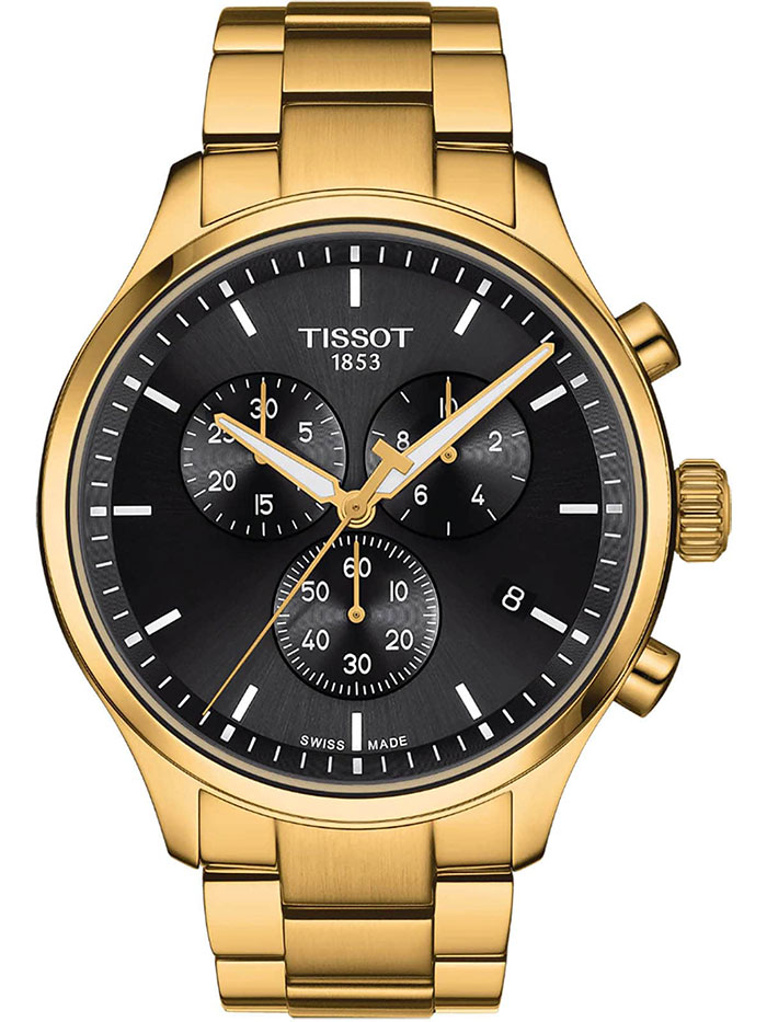 Мужские кварцевые наручные часы с хронографом (секундомером) TISSOT Chrono XL Classic T116.617.33.051.00 коллекции T Classic. Калибр механизма — ETA G10.212. На данной модели отображается текущая дата. Секундомер может отсчитывать до 29 минут 59 секунд. Стрелки покрыты люминесцентным напылением (светятся в темноте). Сапфировое стекло с антибликовым покрытием, устойчивое к появлению царапин. Стальной браслет. На корпус и браслет нанесено стойкое PVD покрытие. Водонепроницаемость WR100 (10 атм). Размеры корпуса: (ШxТ) 45x11 мм. Гарантийный срок — 3 года (1 год от производителя + 2 года от магазина).