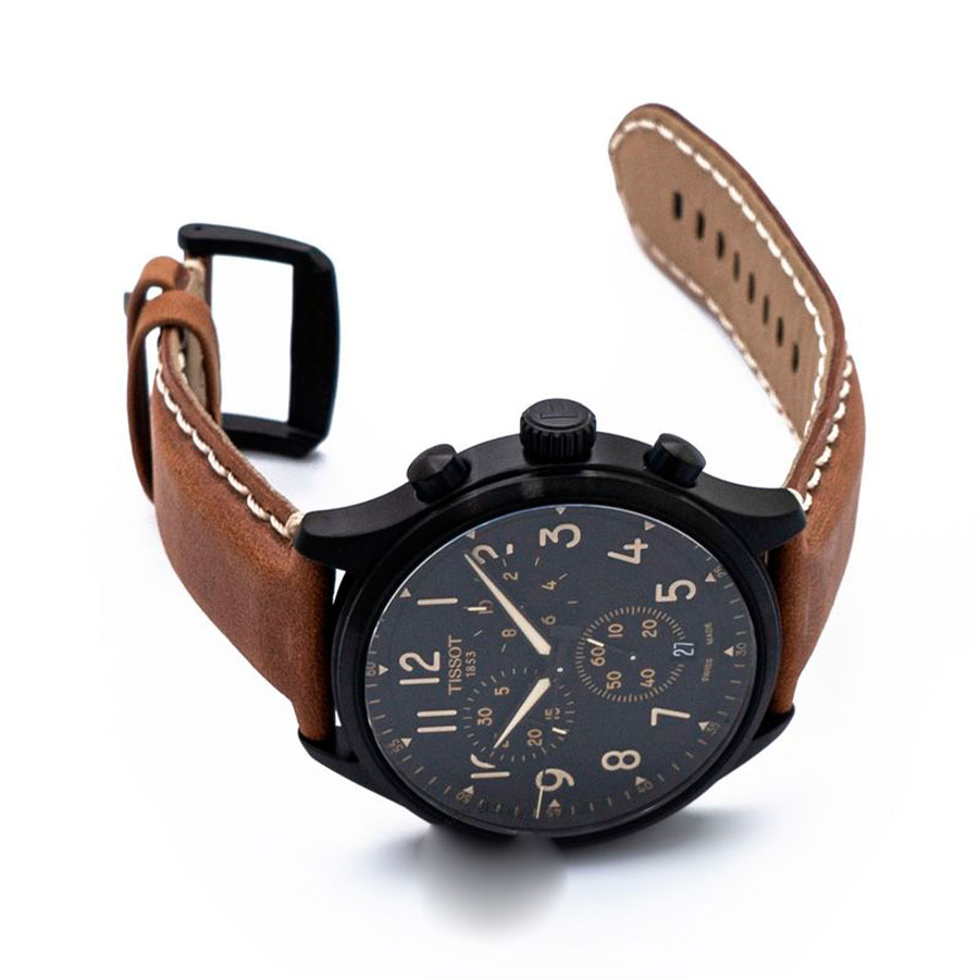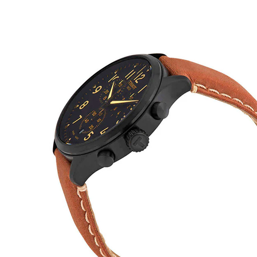 Мужские кварцевые наручные часы с хронографом (секундомером) TISSOT Chrono XL Vintage T116.617.36.052.03 коллекции T Classic. Калибр механизма — ETA G10.212. На данной модели отображается текущая дата. Секундомер может отсчитывать до 29 минут 59 секунд. Стрелки покрыты люминесцентным напылением (светятся в темноте). Сапфировое стекло с антибликовым покрытием, устойчивое к появлению царапин. Кожаный ремешок. На корпус нанесено стойкое PVD покрытие. Водонепроницаемость WR100 (10 атм). Размеры корпуса: (ШxТ) 45x11 мм. Гарантийный срок — 3 года (1 год от производителя + 2 года от магазина).