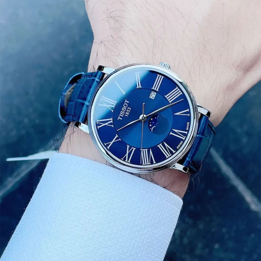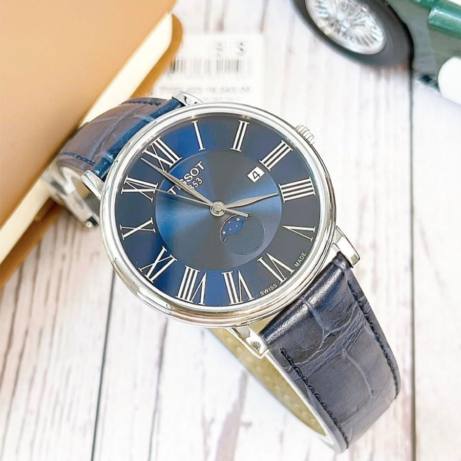 Мужские кварцевые наручные часы TISSOT Carson Premium Gent Moonphase T122.423.16.043.00 коллекции T Classic. Калибр механизма — ETA F05.841. На данной модели отображается текущая дата. Индикация фазы луны. Сапфировое стекло с антибликовым покрытием, устойчивое к появлению царапин. Кожаный ремешок. Водонепроницаемость WR50 (5 атм). Размеры корпуса: (ШxТ) 40x7.6 мм. Гарантийный срок — 3 года (1 год от производителя + 2 года от магазина).