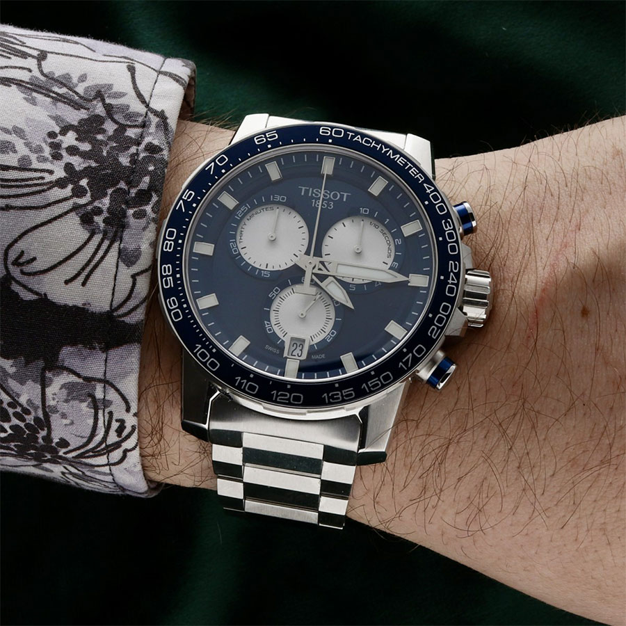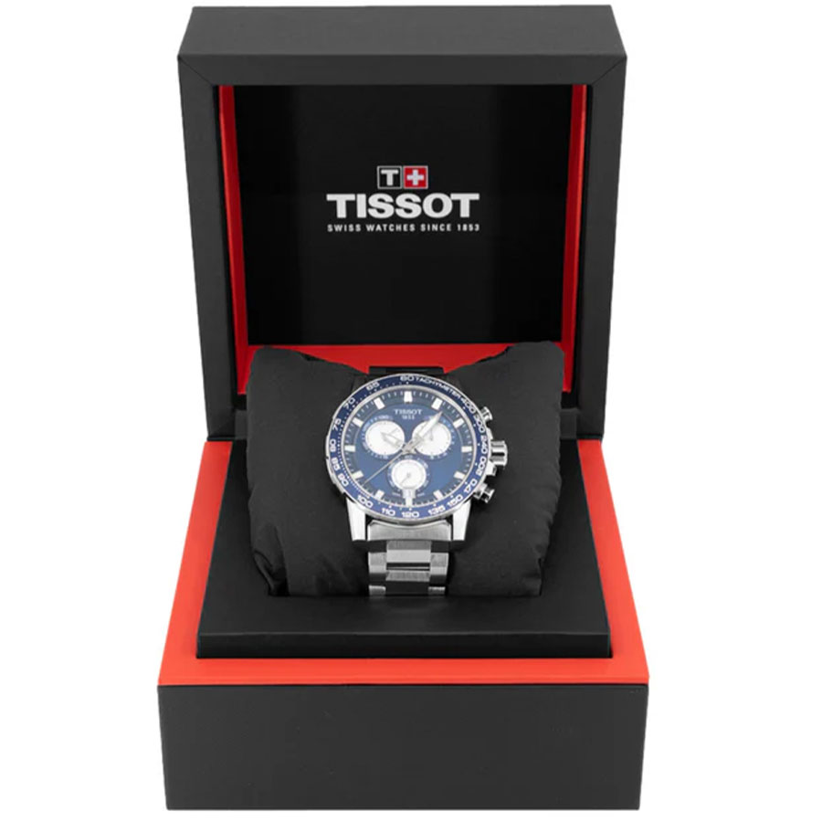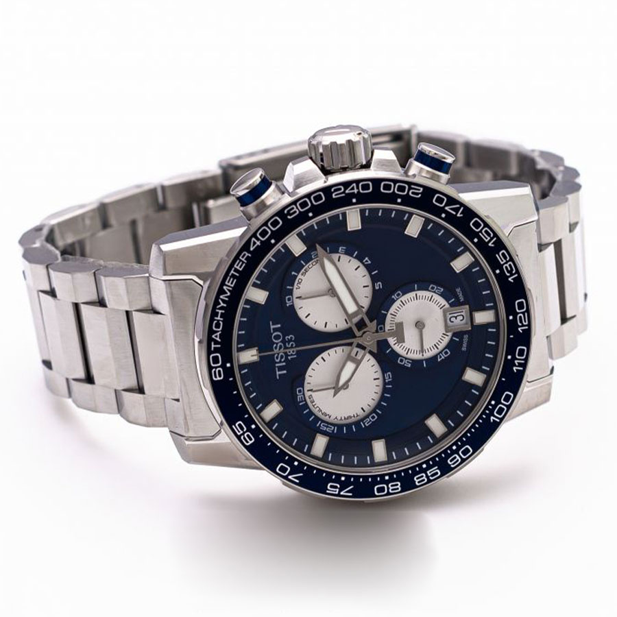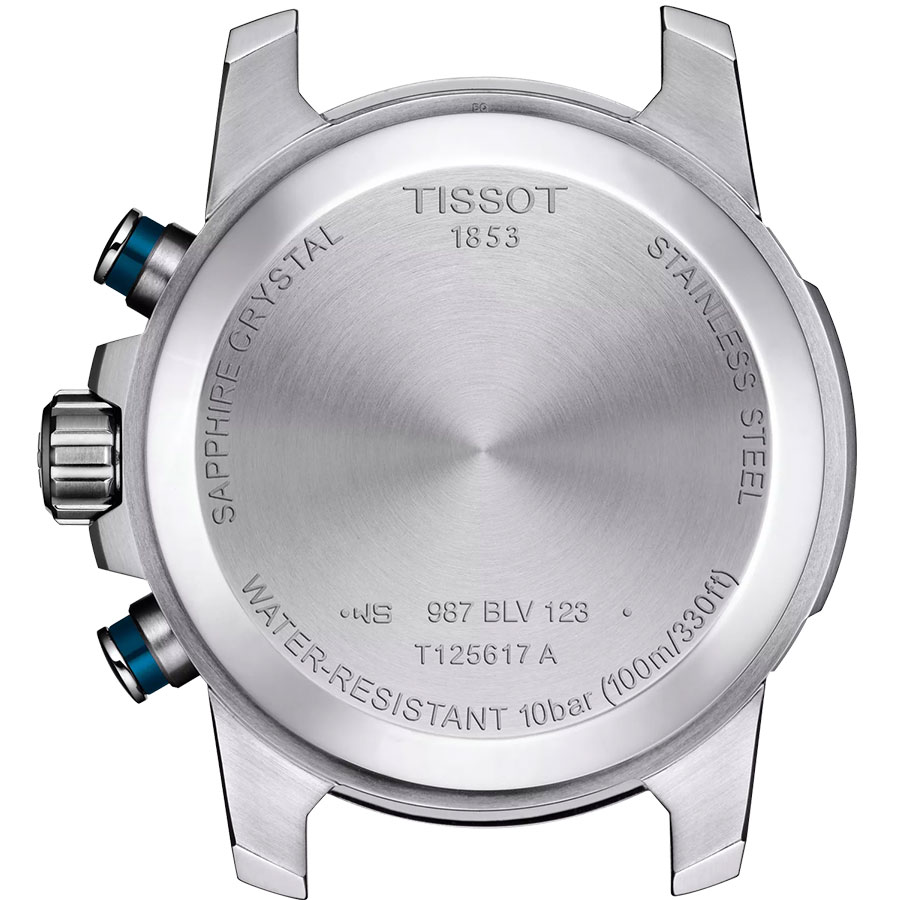 Мужские кварцевые наручные часы с хронографом (секундомером) TISSOT SuperSport Chrono T125.617.11.041.00 коллекции T Sport. Калибр механизма — ETA G10.212. На данной модели отображается текущая дата. Секундомер может отсчитывать до 29 минут 59 секунд. На безеле присутсвует шкала тахиметра для измерения средней скорости движения. Стрелки и метки покрыты люминесцентным напылением Super-LumiNova® (светятся в темноте). Сапфировое стекло с антибликовым покрытием, устойчивое к появлению царапин. Стальной браслет. На корпус частично нанесено стойкое PVD покрытие. Водонепроницаемость WR100 (10 атм). Размеры корпуса: (ШxТ) 45.5х12 мм. Гарантийный срок — 3 года (1 год от производителя + 2 года от магазина).