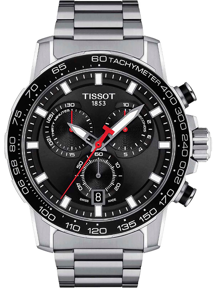 Мужские кварцевые наручные часы с хронографом (секундомером) TISSOT SuperSport Chrono T125.617.11.051.00 коллекции T Sport. Калибр механизма — ETA G10.212. На данной модели отображается текущая дата. Секундомер может отсчитывать до 29 минут 59 секунд. На безеле присутсвует шкала тахиметра для измерения средней скорости движения. Стрелки и метки покрыты люминесцентным напылением Super-LumiNova® (светятся в темноте). Сапфировое стекло с антибликовым покрытием, устойчивое к появлению царапин. Стальной браслет. На корпус частично нанесено стойкое PVD покрытие. Водонепроницаемость WR100 (10 атм). Размеры корпуса: (ШxТ) 45.5х12 мм. Гарантийный срок — 3 года (1 год от производителя + 2 года от магазина).