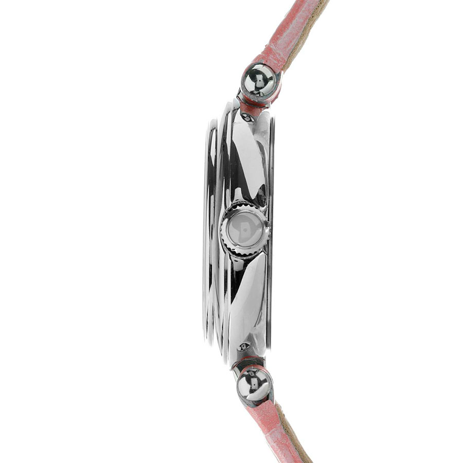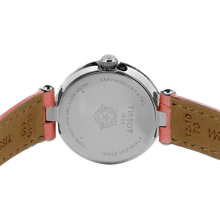 Корпус диаметром 26 мм и толщиной 6,8 мм подчёркивает миниатюрность модели, сохраняя при этом удобство считывания времени. Серебристый циферблат надёжно защищён сапфировым стеклом с антибликовым покрытием, устойчивым к появлению царапин. Кожаный ремешок добавляет женственности и делает ношение комфортным.