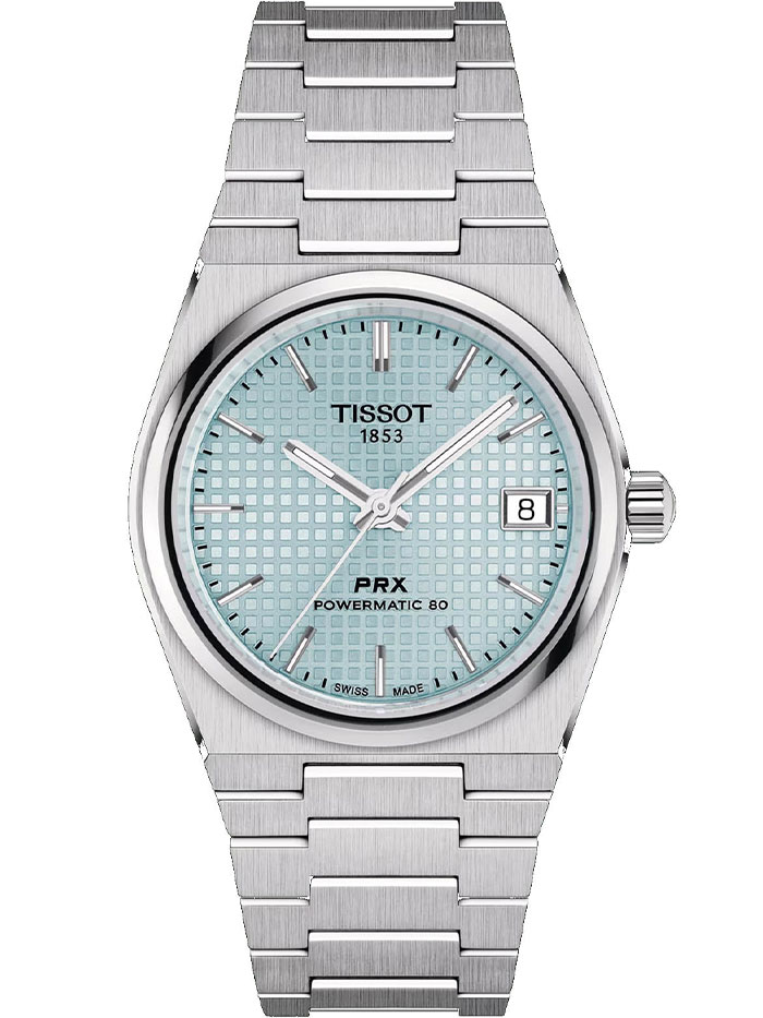 Женские механические наручные часы TISSOT PRX Powermatic 80 35mm T137.207.11.351.00 коллекции T Classic с автоподзаводом и возможностью ручного завода. Калибр механизма — Powermatic 80.111. В механизме часов использована запатентованная балансирная пружина Nivachron, благодаря чему запас хода значительно увеличен и составляет не менее 80-ти часов. Количество камней - 23. Функция стоп-секунда (остановка секундной стрелки для установки точного времени). На данной модели отображается текущая дата. Стрелки и метки покрыты люминесцентным напылением Super-LumiNova® (светятся в темноте). Сапфировое стекло с антибликовым покрытием, устойчивое к появлению царапин. Завинчивающаяся прозрачная задняя крышка. Стальной браслет. Водонепроницаемость WR100 (10 атм). Размеры корпуса: (ШxТ) 35x10.9 мм. Гарантийный срок — 3 года (1 год от производителя + 2 года от магазина).
