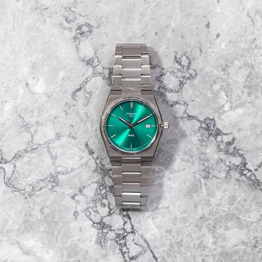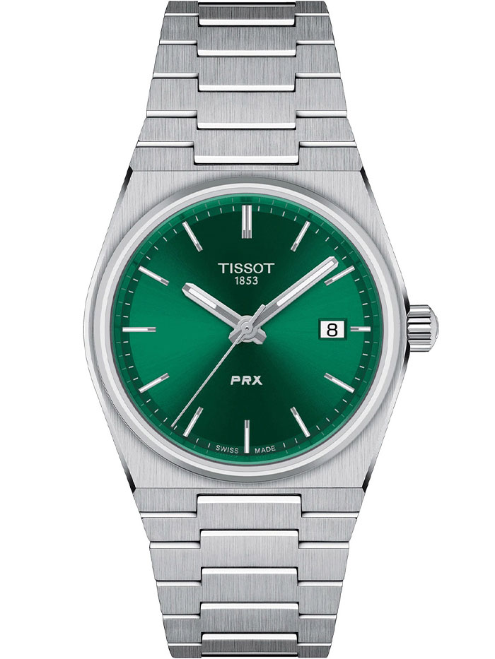 Женские кварцевые наручные часы TISSOT PRX 35 mm T137.210.11.081.00 коллекции T Classic. Калибр механизма — ETA F05.115. На данной модели отображается текущая дата. Стрелки и метки покрыты люминесцентным напылением Super-LumiNova® (светятся в темноте). Сапфировое стекло с антибликовым покрытием, устойчивое к появлению царапин. Стальной браслет. Водонепроницаемость WR100 (10 атм). Размеры корпуса: (ШxТ) 35x9.6 мм. Гарантийный срок — 3 года (1 год от производителя + 2 года от магазина).