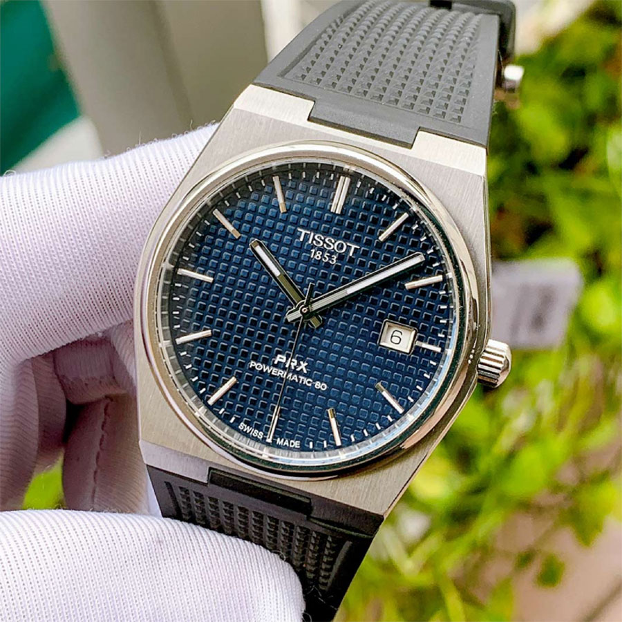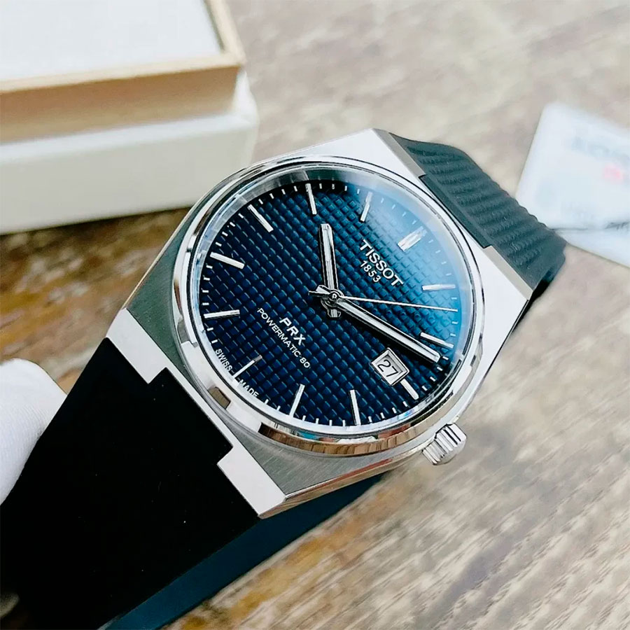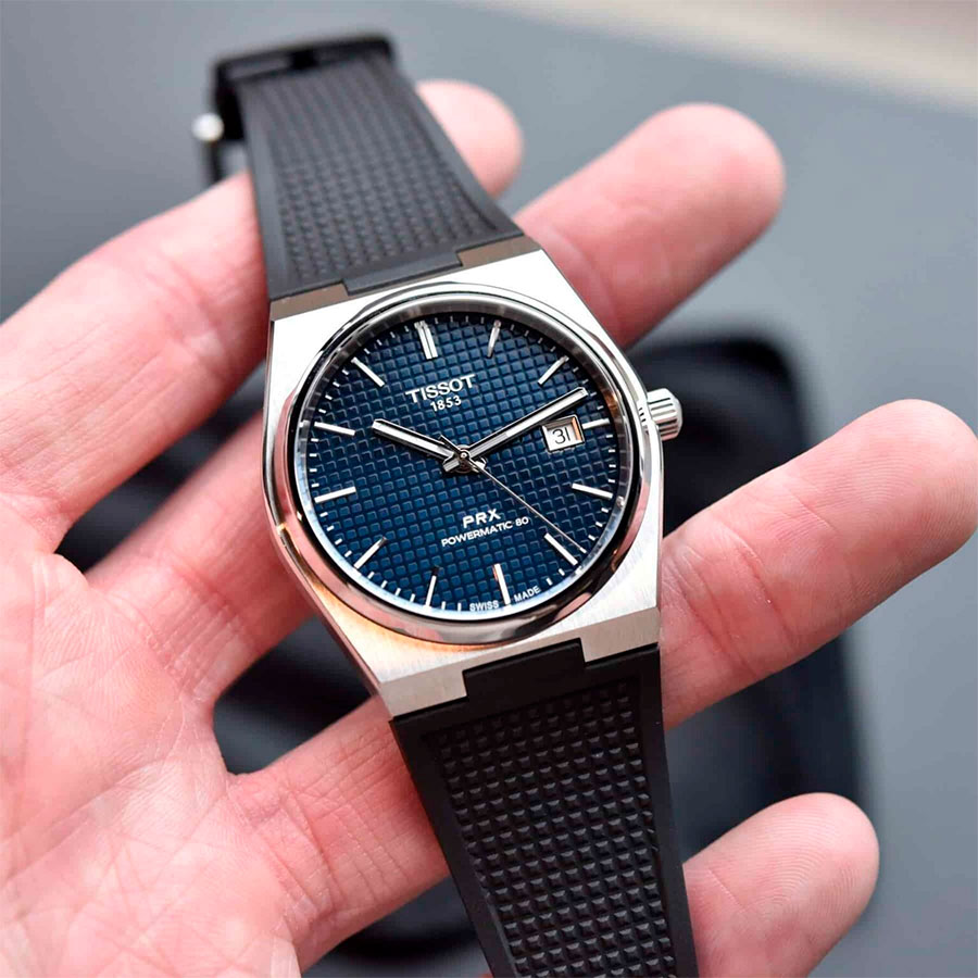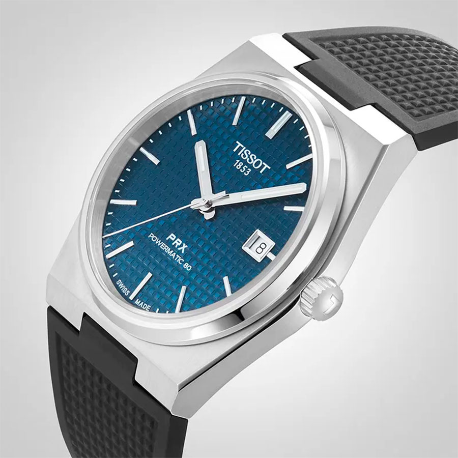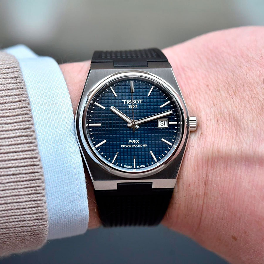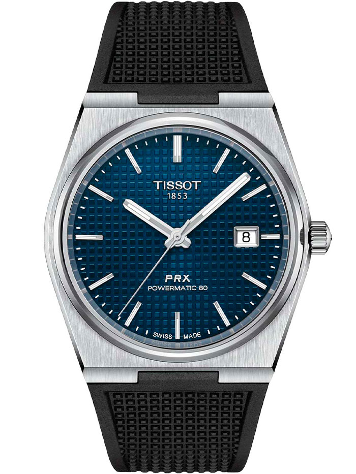 Мужские механические наручные часы TISSOT PRX Powermatic 80 40 мм T137.407.17.041.00 коллекции T Classic с автоподзаводом и возможностью ручного завода. Калибр механизма — Powermatic 80.111. В механизме часов использована запатентованная балансирная пружина Nivachron, благодаря чему запас хода значительно увеличен и составляет не менее 80-ти часов. Количество камней - 23. Функция стоп-секунда (остановка секундной стрелки для установки точного времени). На данной модели отображается текущая дата. Стрелки и метки покрыты люминесцентным напылением Super-LumiNova® (светятся в темноте). Сапфировое стекло с антибликовым покрытием, устойчивое к появлению царапин. Завинчивающаяся прозрачная задняя крышка. Полимерный ремешок. Водонепроницаемость WR100 (10 атм). Размеры корпуса: (ШxТ) 40x10.9 мм. Гарантийный срок — 3 года (1 год от производителя + 2 года от магазина).
