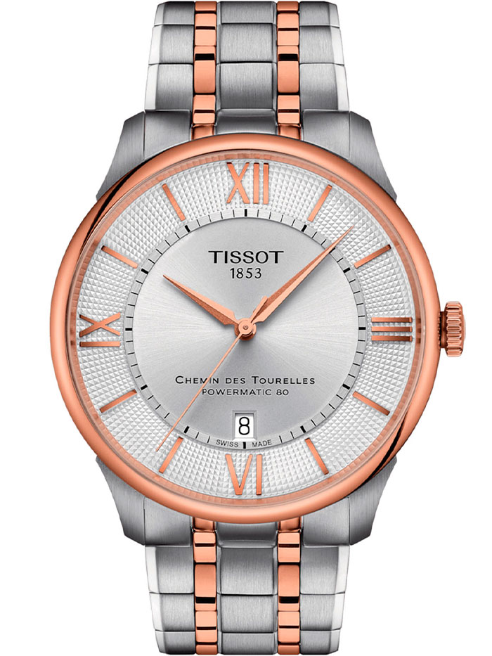 Мужские механические наручные часы TISSOT Chemin Des Tourelles Powermatic 80 42mm T139.407.22.038.00 коллекции T Classic с автоподзаводом и возможностью ручного завода. Калибр механизма — Powermatic 80.111. В механизме часов использована запатентованная балансирная пружина Nivachron, благодаря чему запас хода значительно увеличен и составляет не менее 80-ти часов. Количество камней - 23. Функция стоп-секунда (остановка секундной стрелки для установки точного времени). На данной модели отображается текущая дата. Сапфировое стекло с антибликовым покрытием, устойчивое к появлению царапин. Завинчивающаяся прозрачная задняя крышка. Стальной браслет. На корпус и браслет частично нанесено стойкое PVD покрытие. Водонепроницаемость WR50 (5 атм). Размеры корпуса: (ШxТ) 42x11.3 мм. Гарантийный срок — 3 года (1 год от производителя + 2 года от магазина).